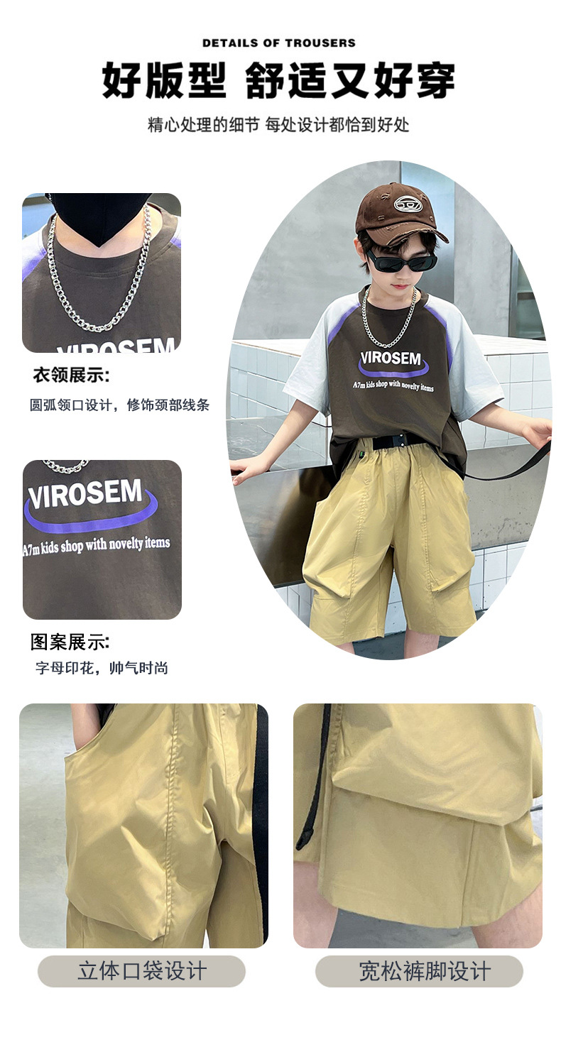 男童夏季套装2024新款中大童男孩夏款休闲韩版短袖短裤两件套夏装