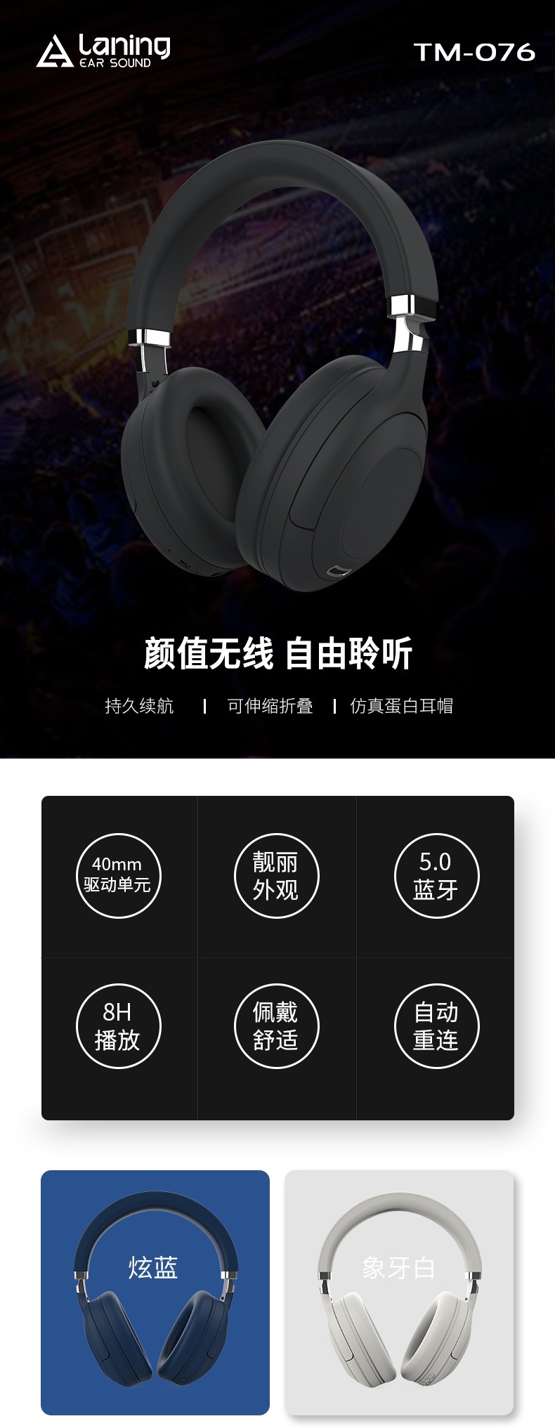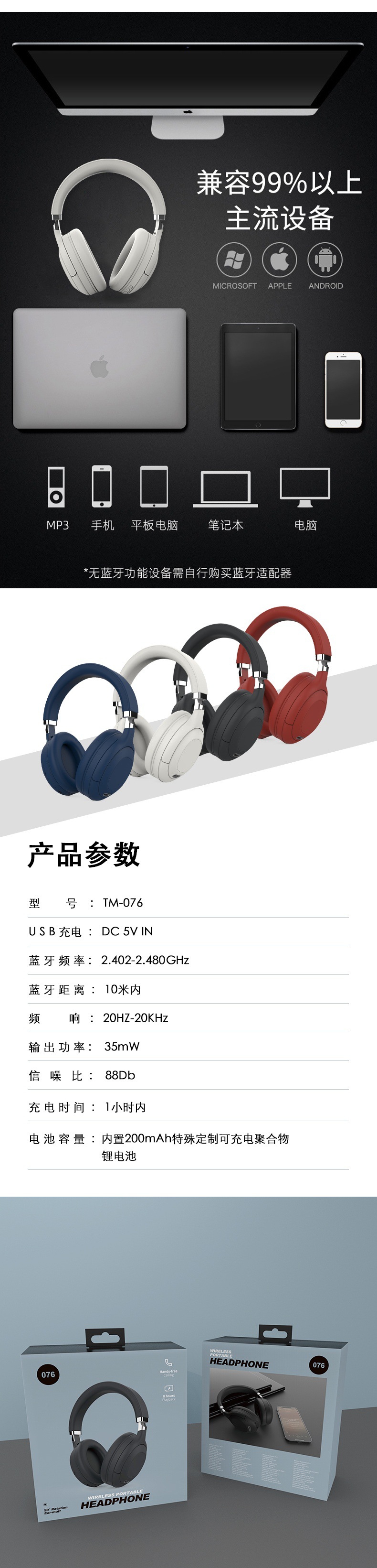 TM-076高音质蓝牙耳机头戴式无线游戏耳机网课运动电脑手机通用
