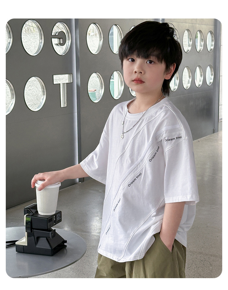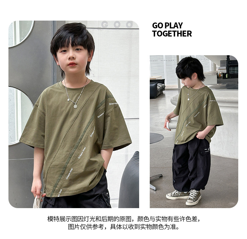男童夏季短袖T恤2024夏款新款中大童个性高级感上衣夏装衣服潮牌t