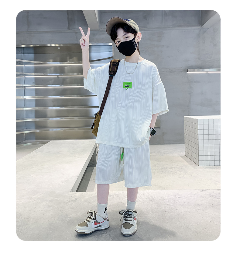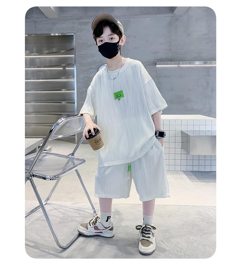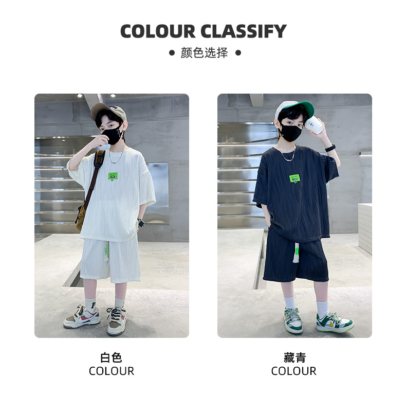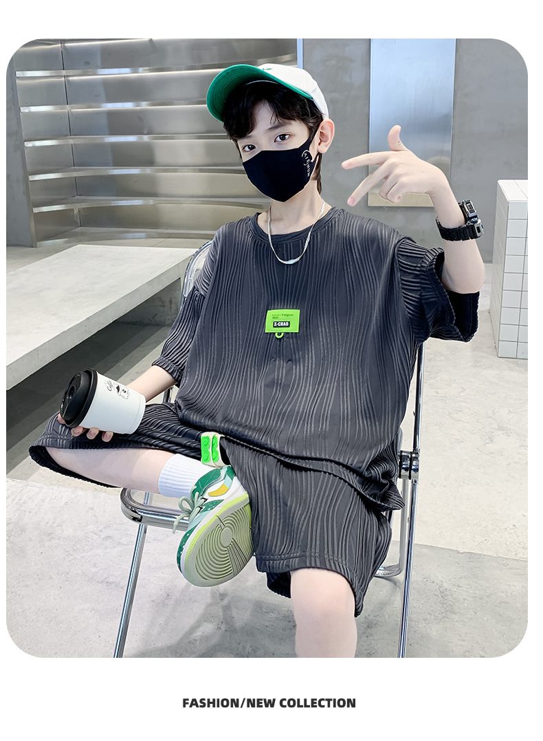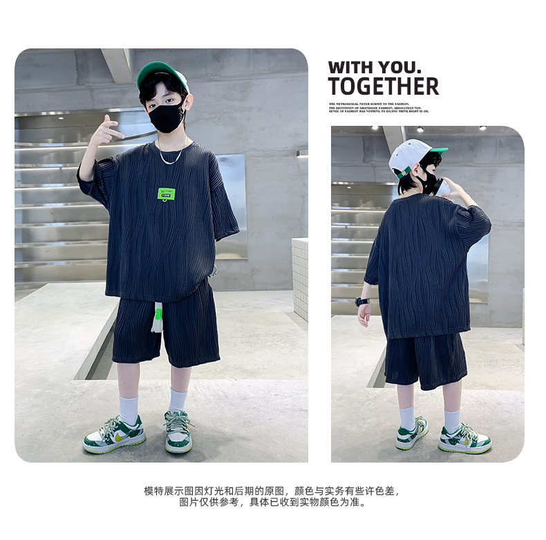 男童纯色短袖套装夏款2024新款中大童男孩夏季透气轻薄T恤短裤潮t