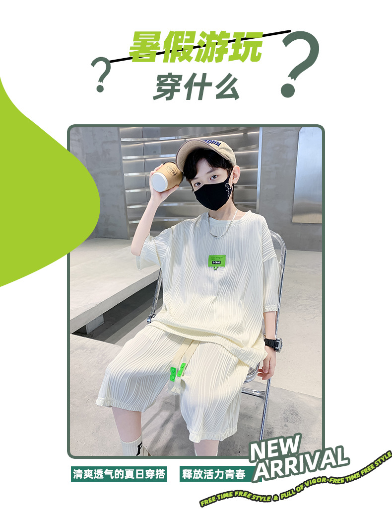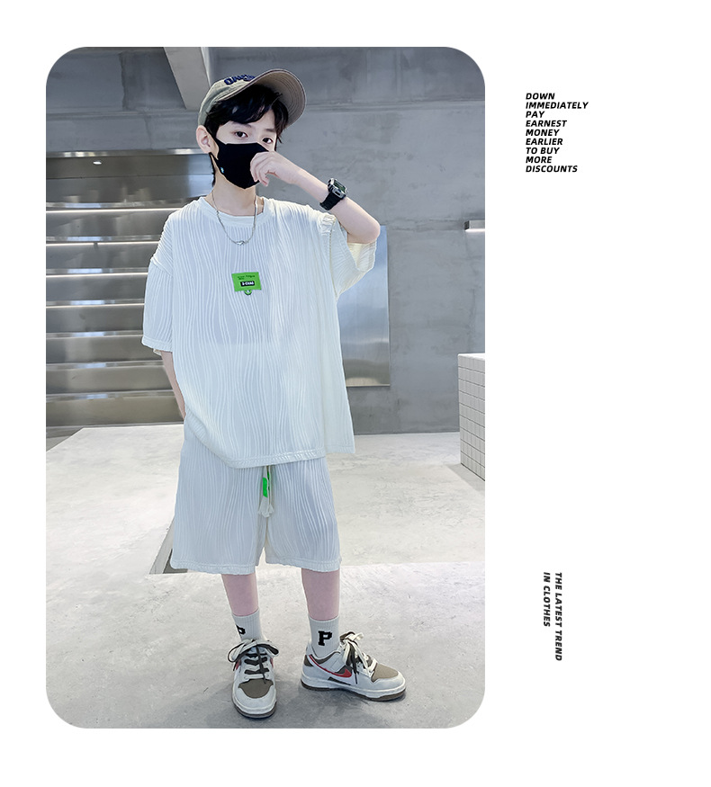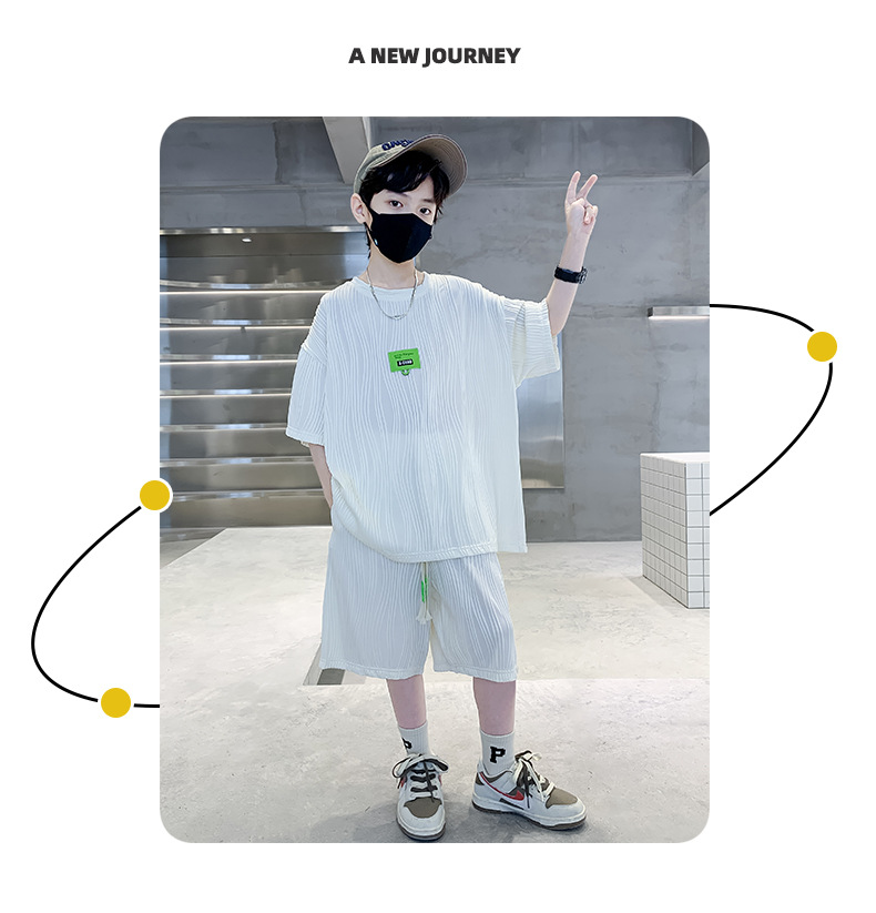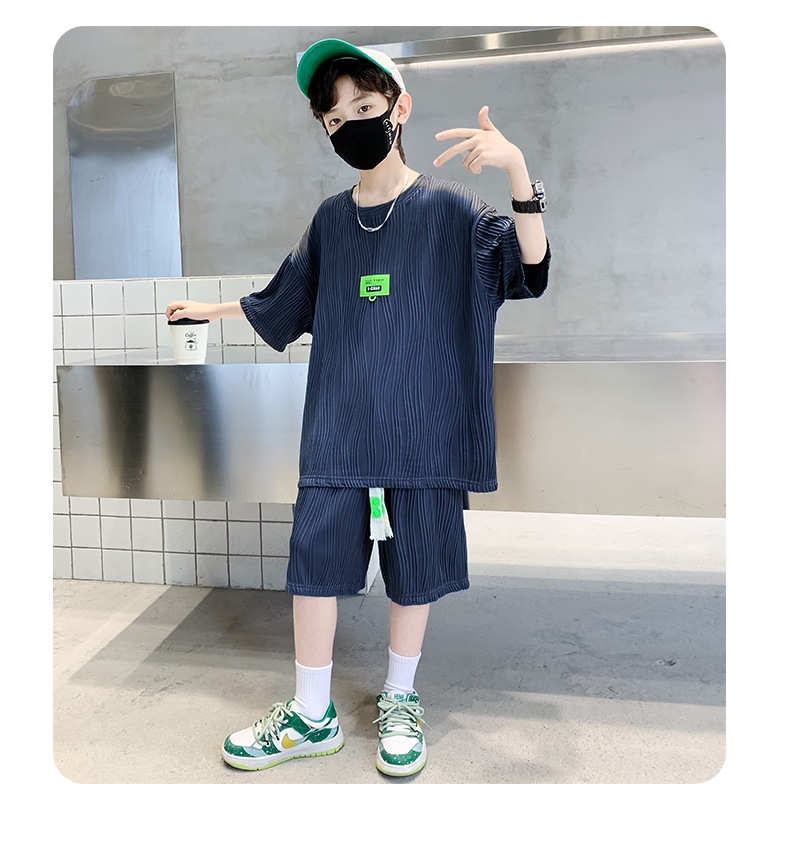 男童纯色短袖套装夏款2024新款中大童男孩夏季透气轻薄T恤短裤潮t