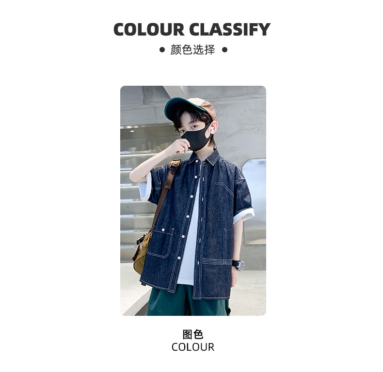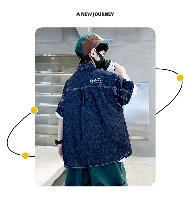儿童牛仔衬衫夏季短袖2024新款中大童夏款个性衬衣男孩夏装衣服潮