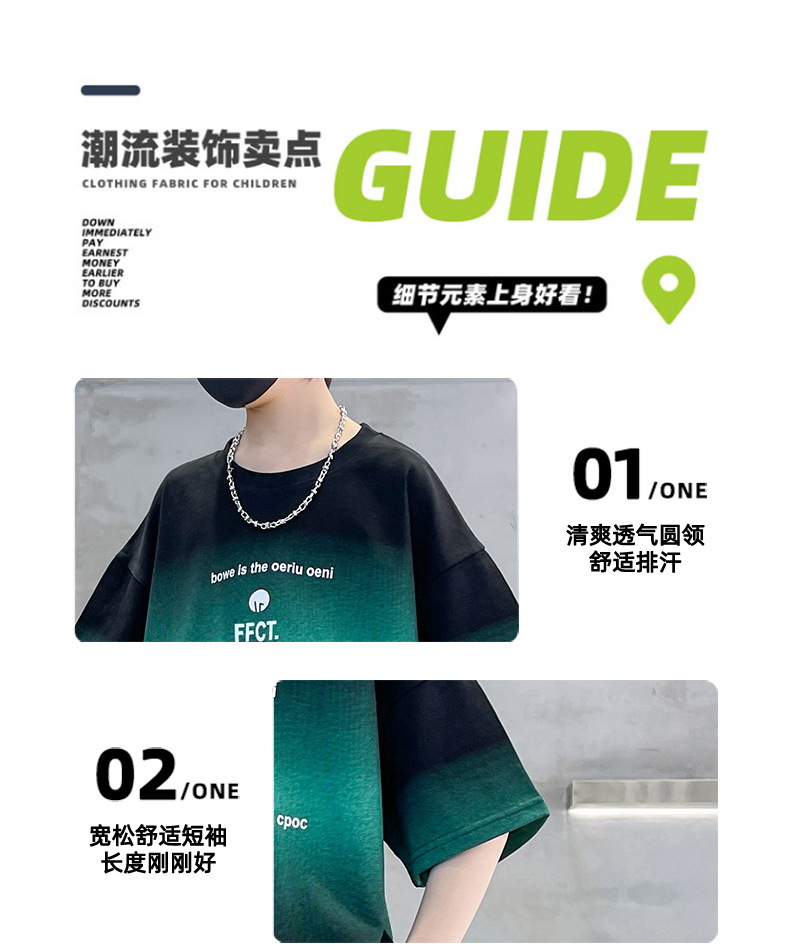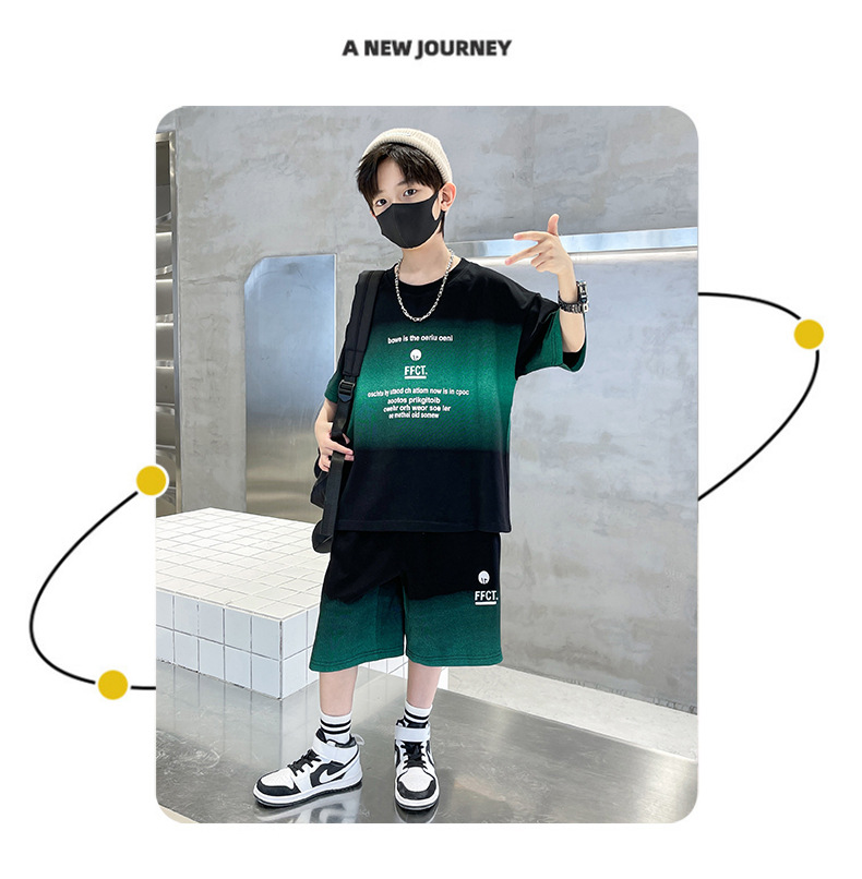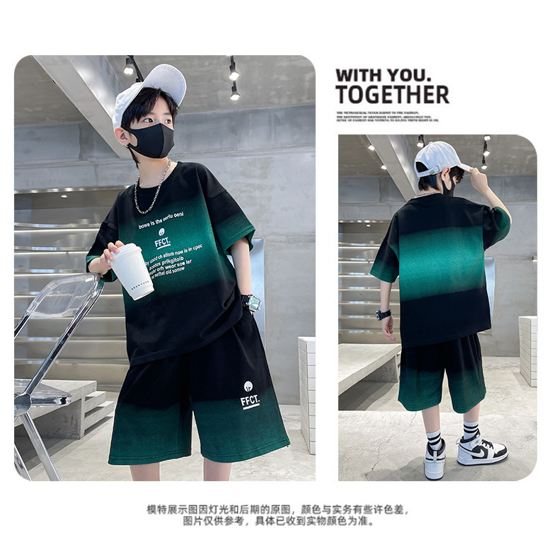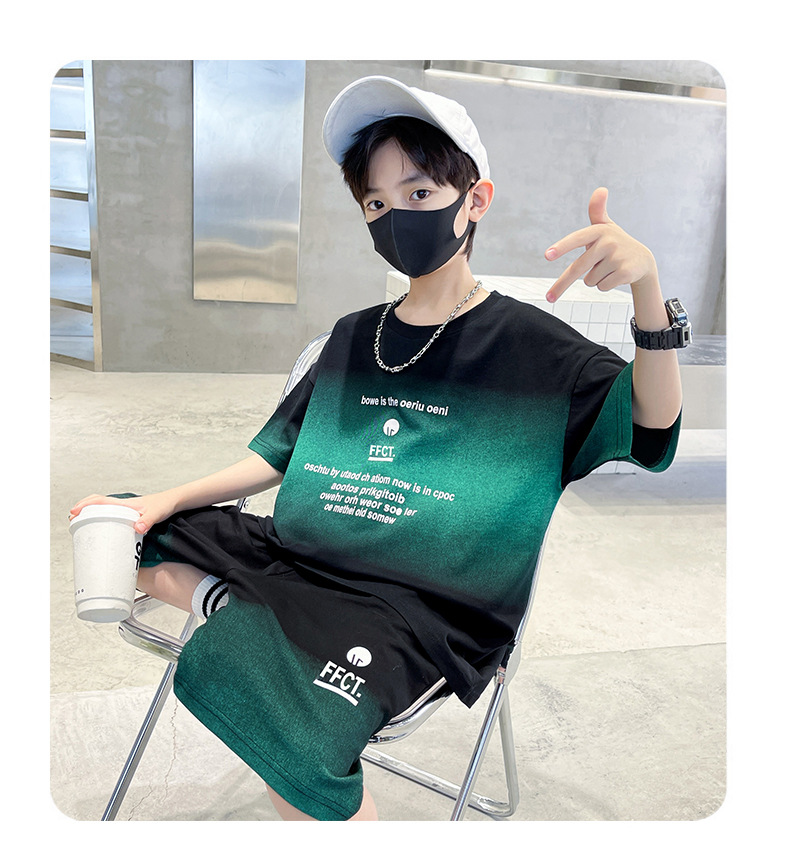 儿童套装男孩潮牌夏装2024新款中大童男童个性渐变短袖两件套夏款