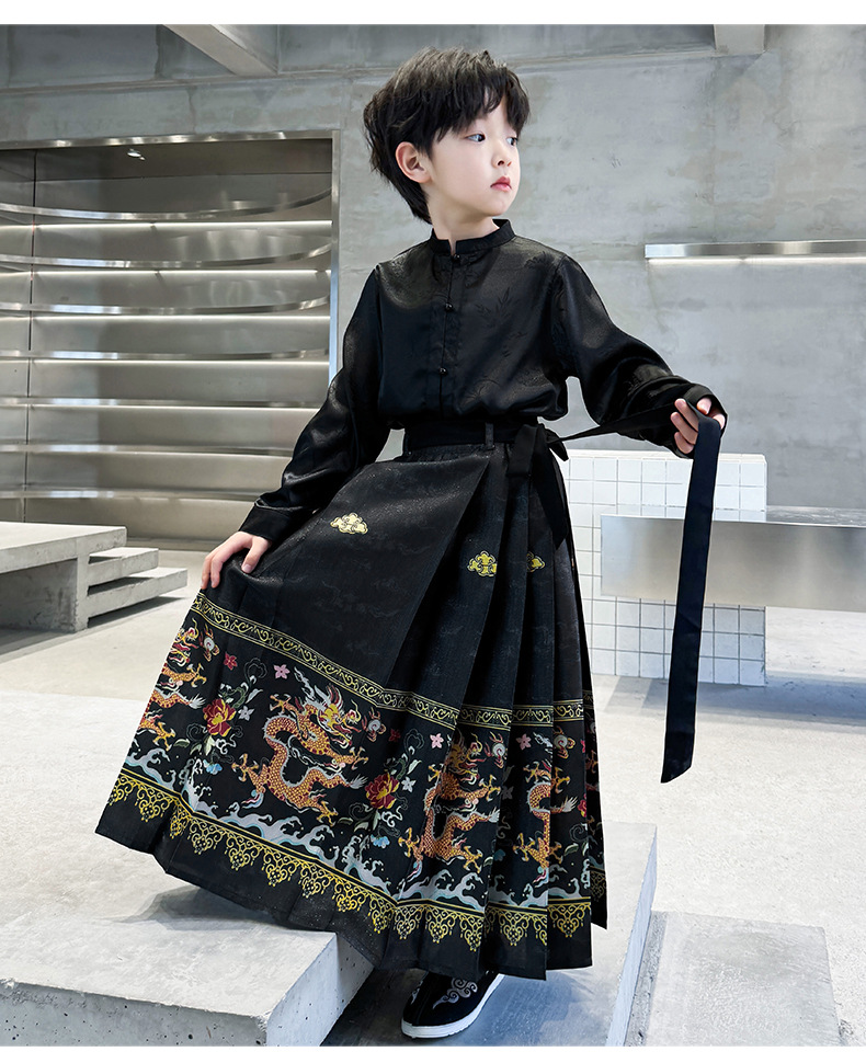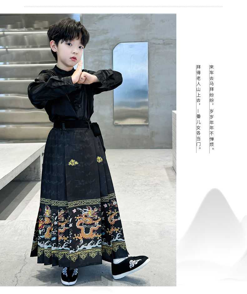 男童唐装汉服中式国风套装春秋款2024新款男女同款马面裙儿童古风