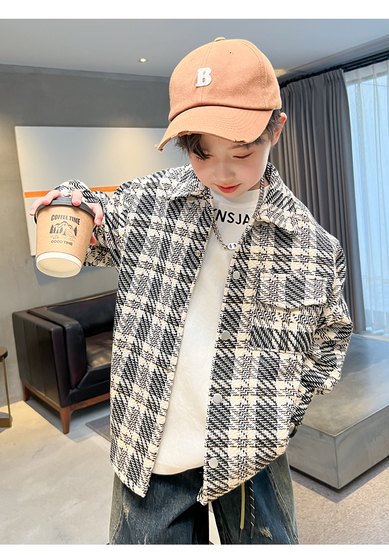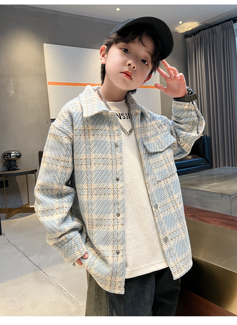 男童小香风外套春秋款2024新款中大童男孩洋气炸街夹克上衣春季潮