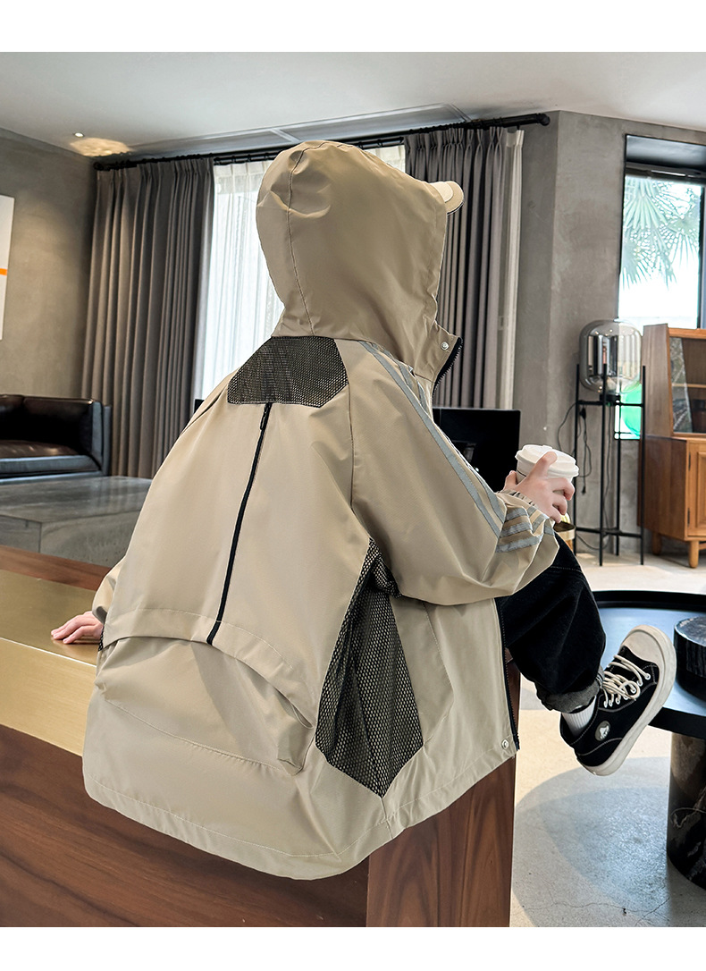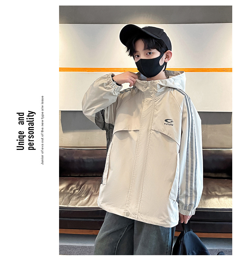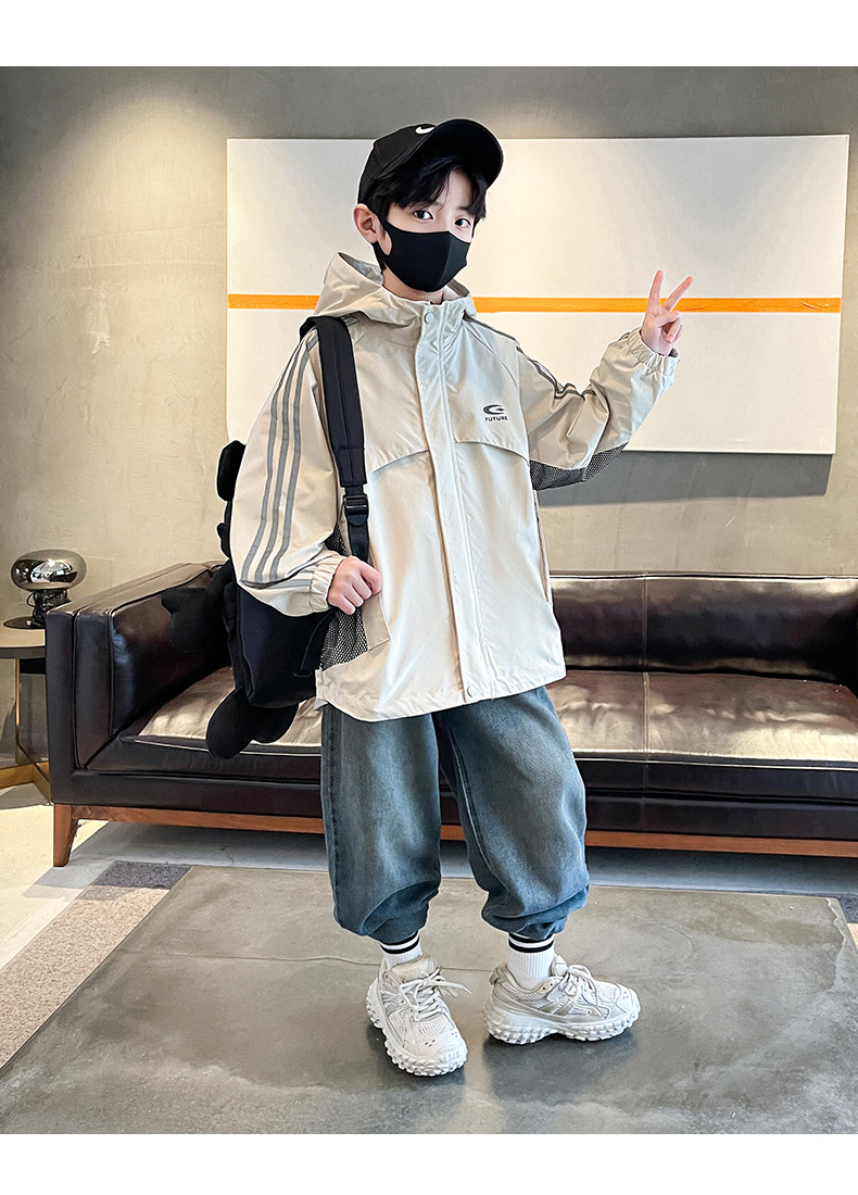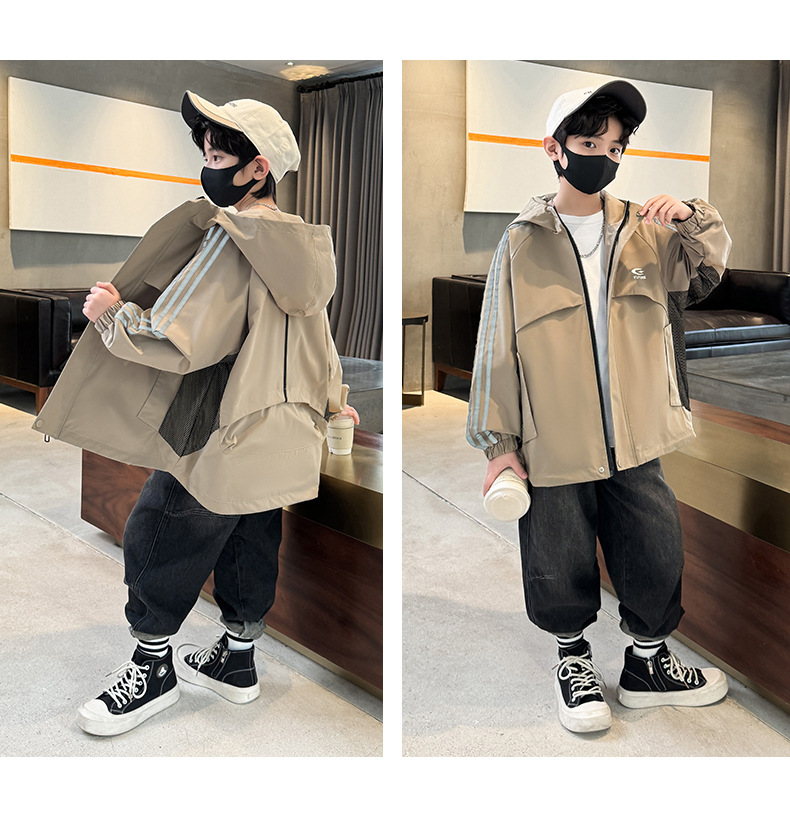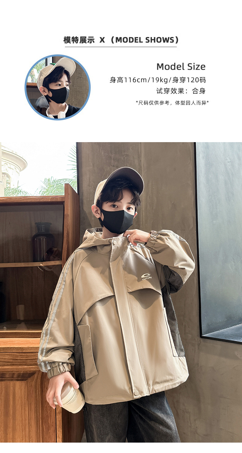 男童春装风衣外套2024新款中大童潮流酷帅连帽上衣儿童春季冲锋衣