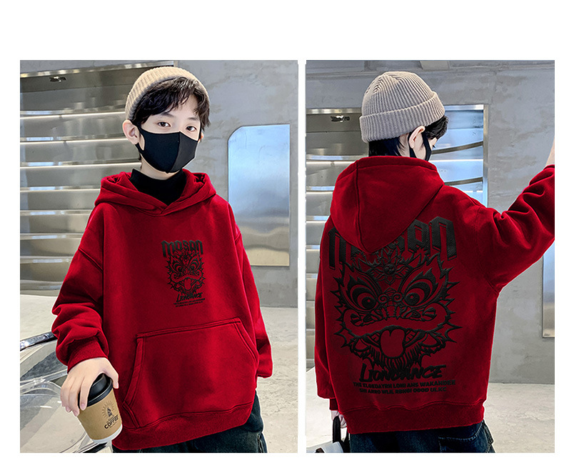 男童休闲连帽卫衣2024春款龙年年服中大童男孩春秋款打底衫上衣潮