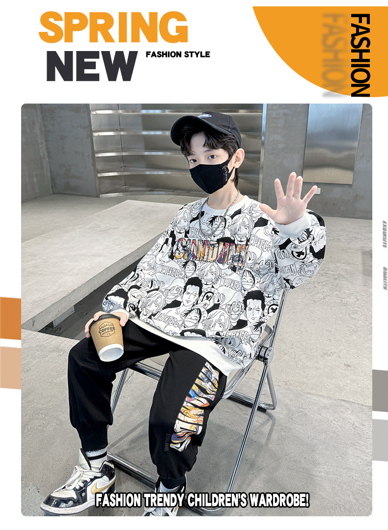 男童春装运动套装2024新款中大童春季洋气卡通两件套男孩春秋款潮