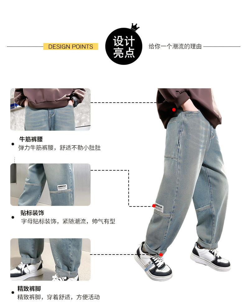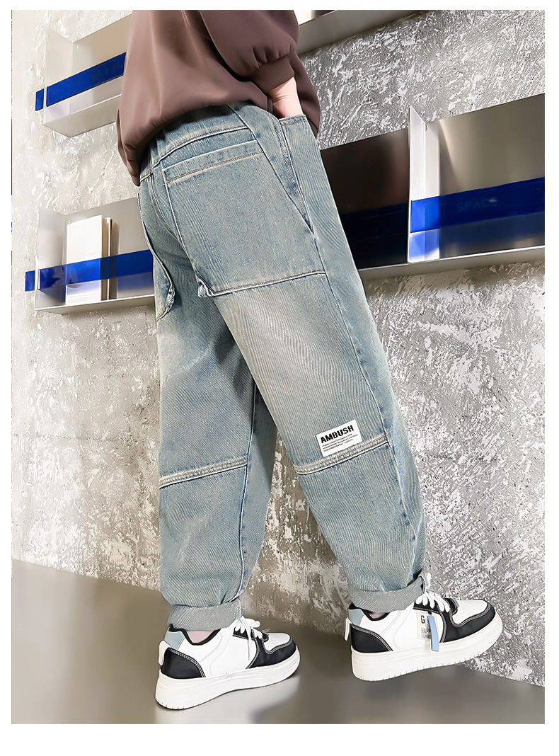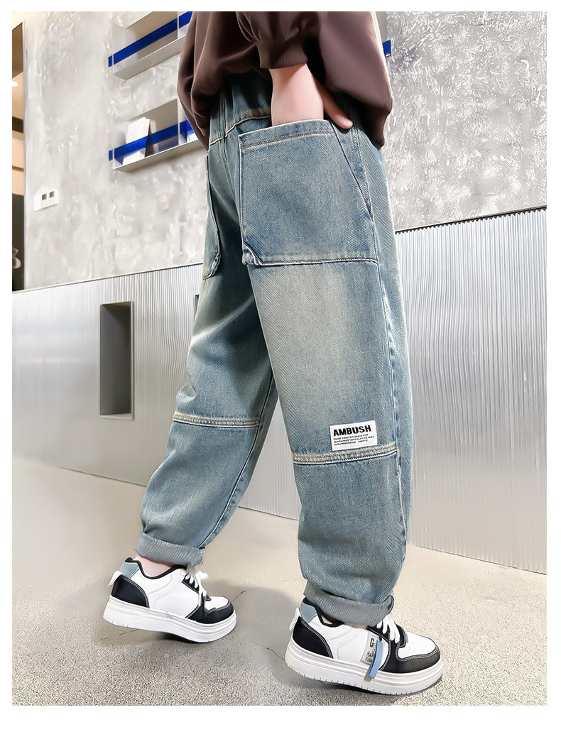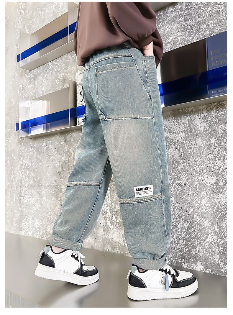 儿童春秋款裤子2024新款春秋男孩纯色直筒裤中大童洋气时髦牛仔裤