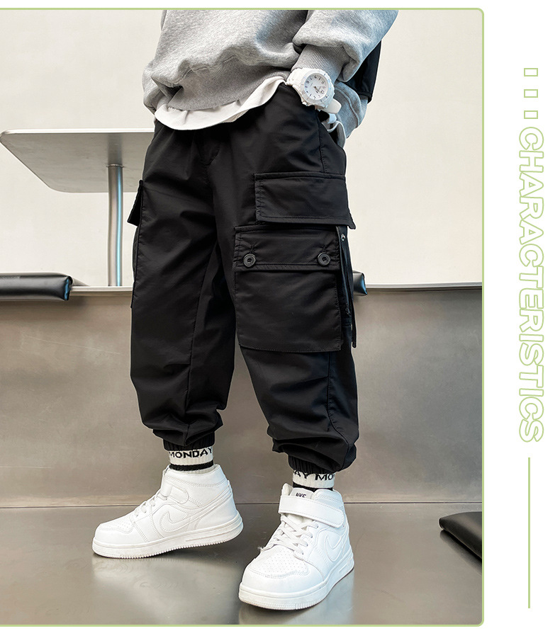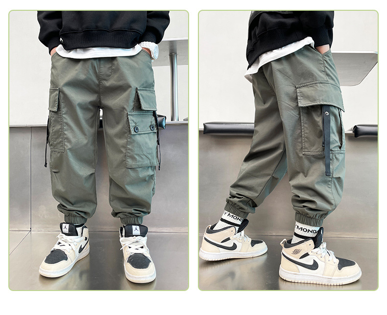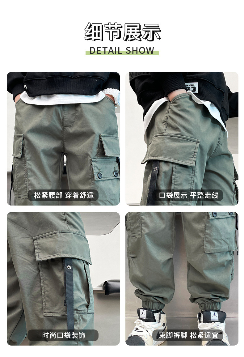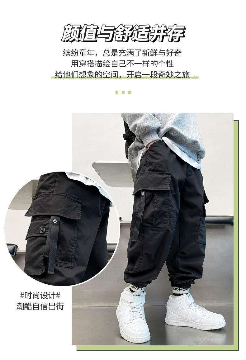 儿童工装裤子春秋装2024新款中大童男孩洋气时髦运动裤春季衣服潮