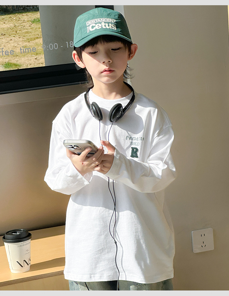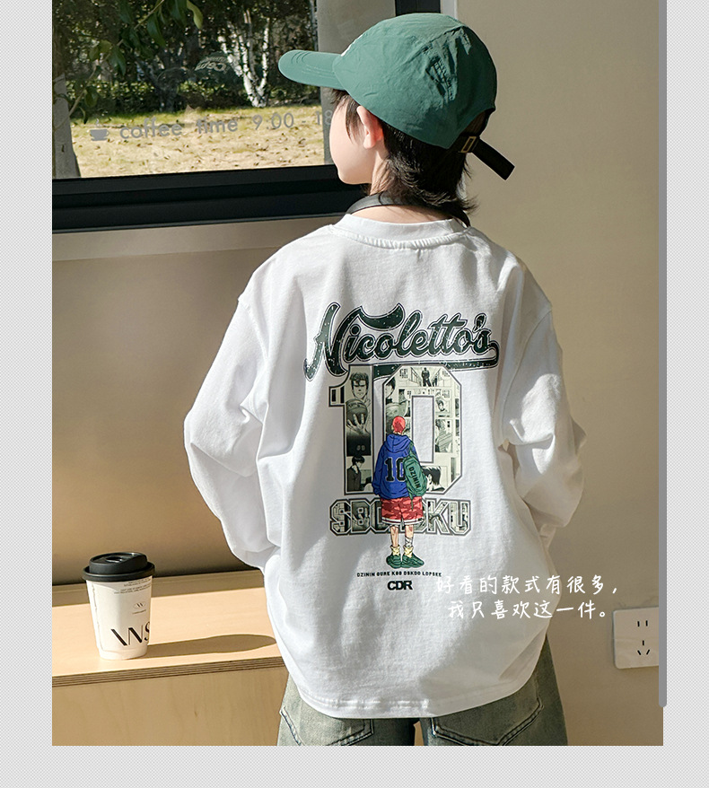 男童长袖T恤春秋款2024新款儿童春装中大童印花打底衫男孩帅气潮8