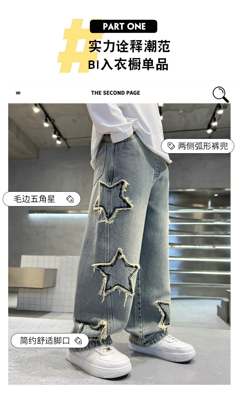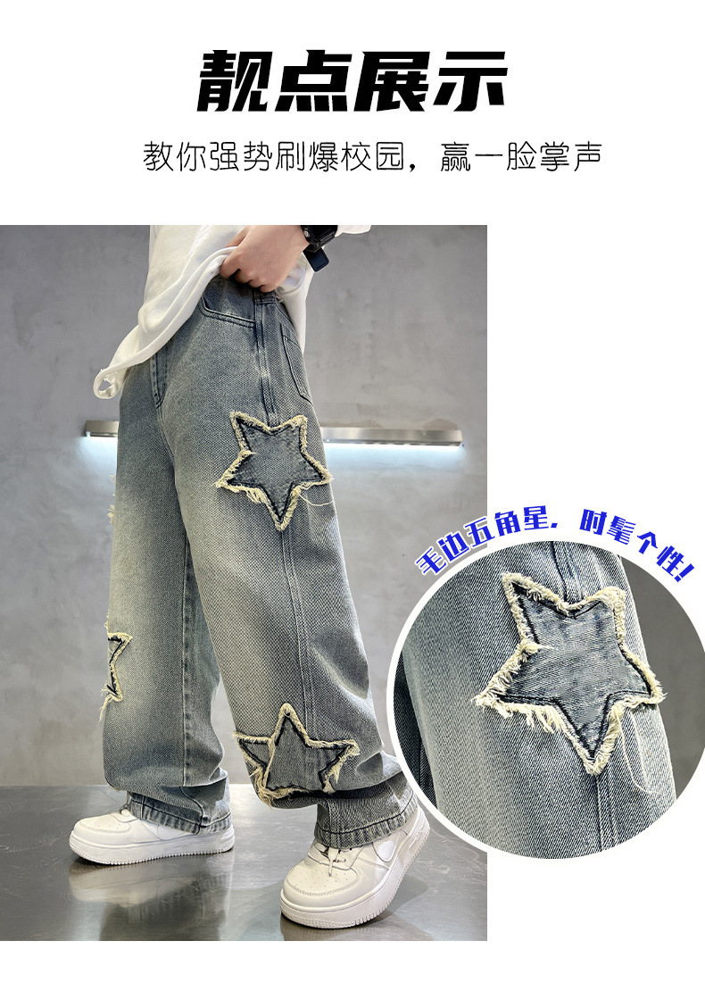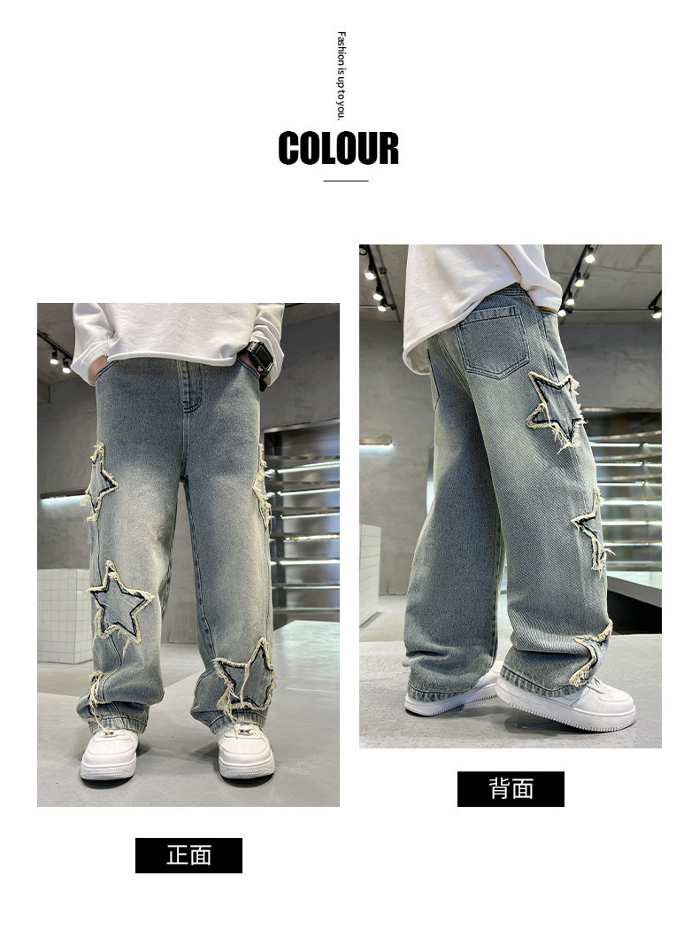 儿童裤子春装新款2024中大童潮流帅气牛仔裤男孩春秋款洋气阔腿裤
