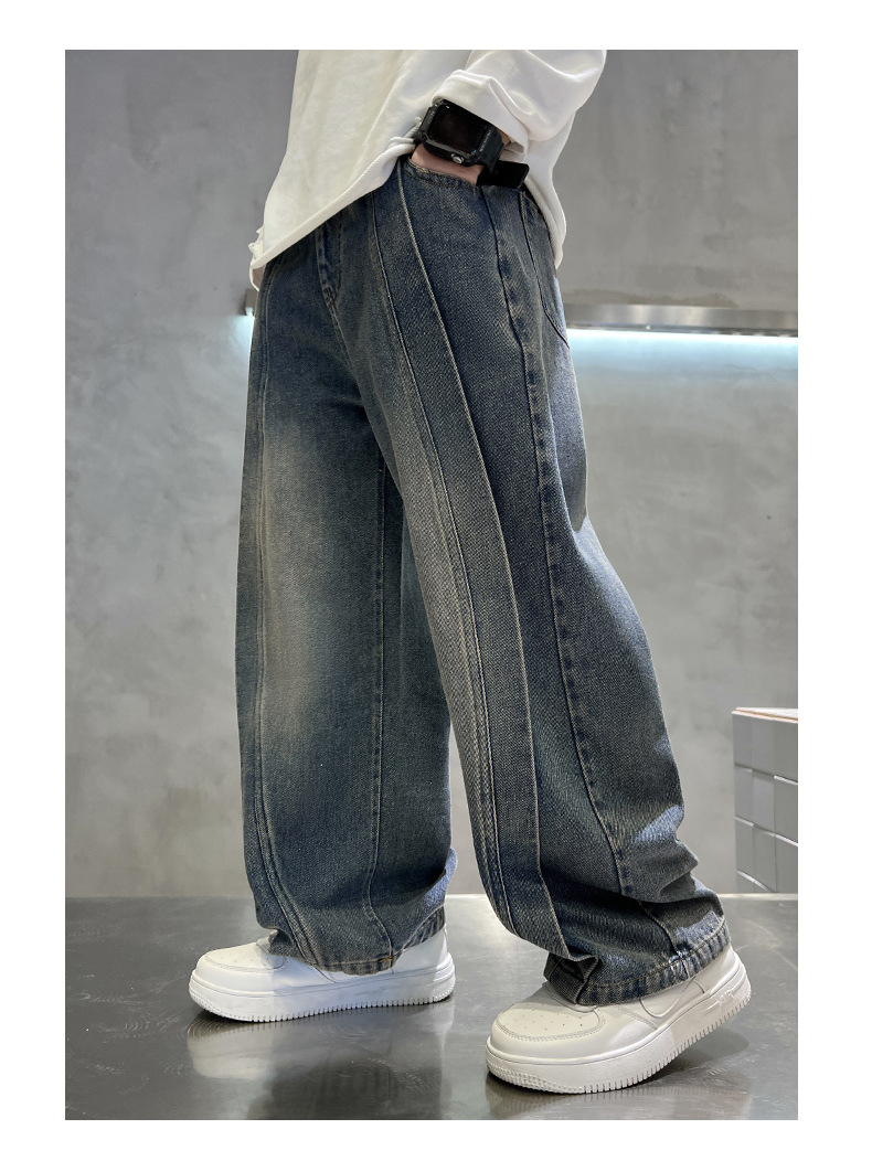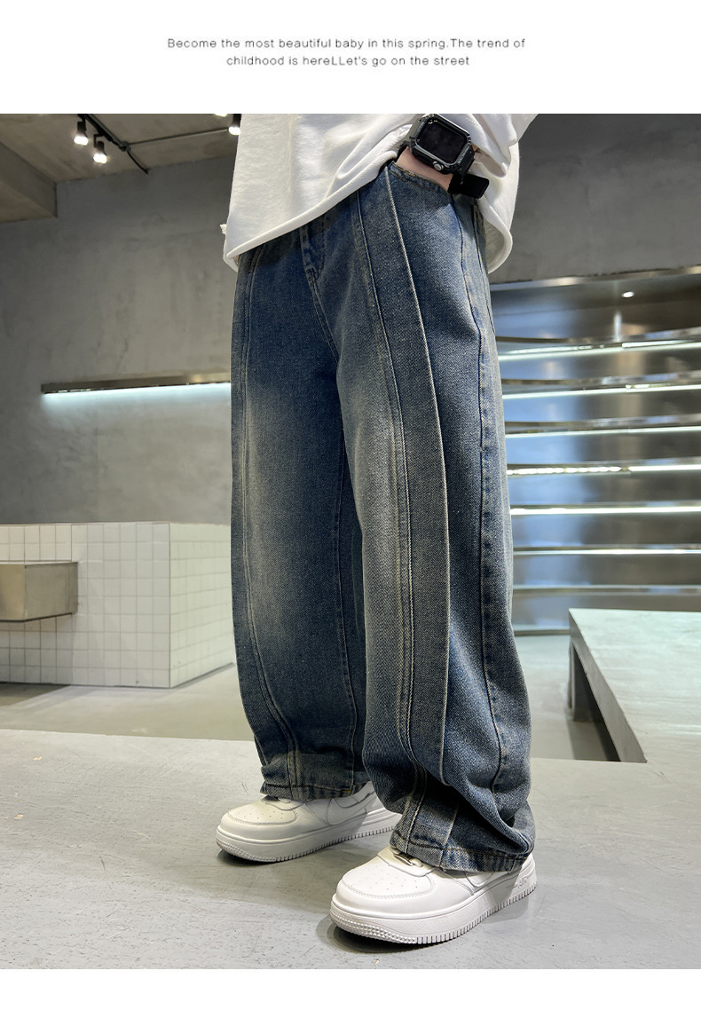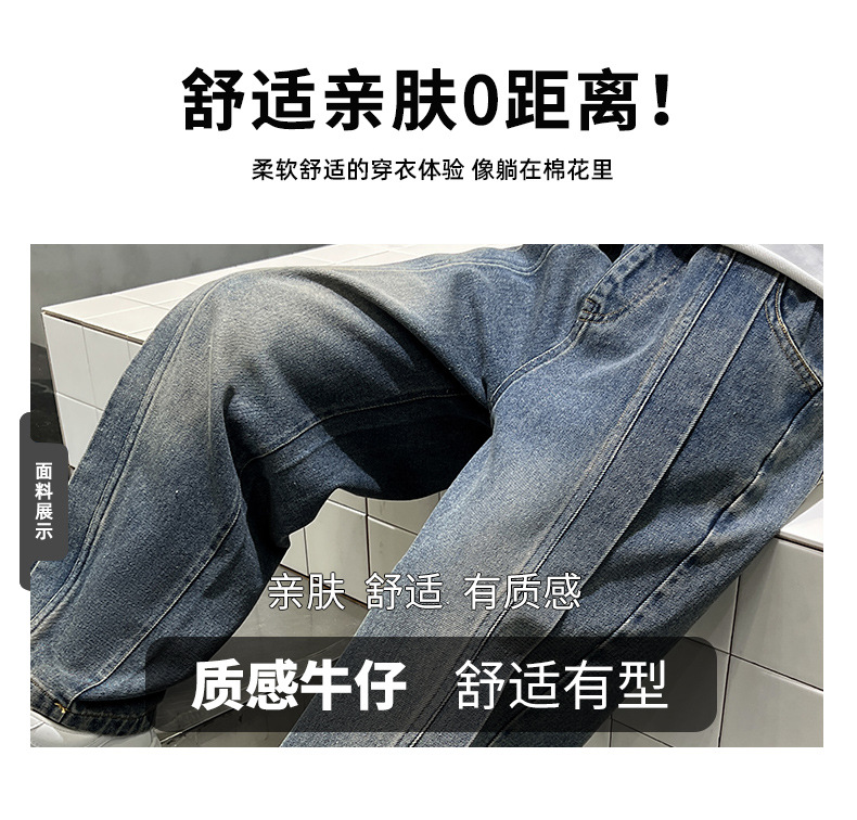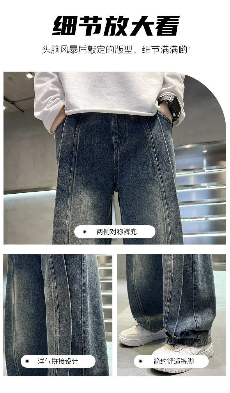 儿童牛仔裤春秋款2024新款男孩潮牌裤子中大童春装宽松洋气阔腿裤