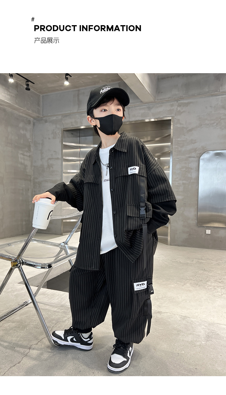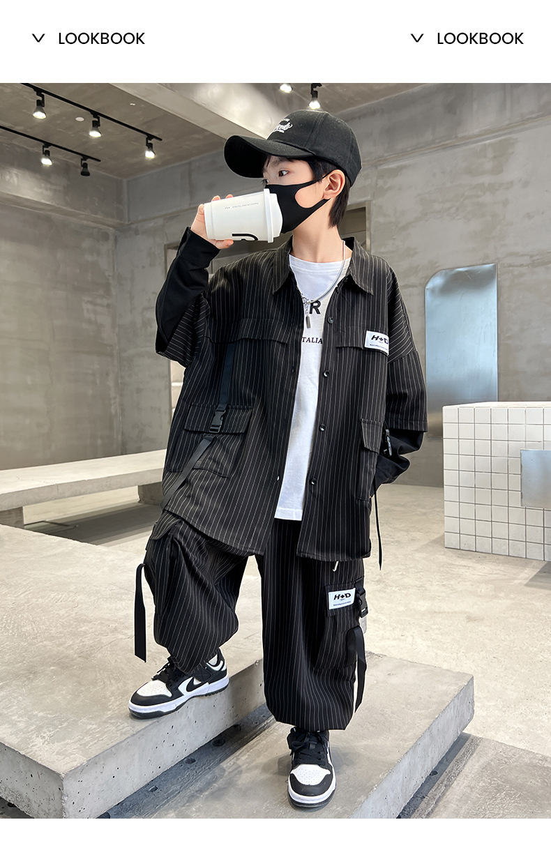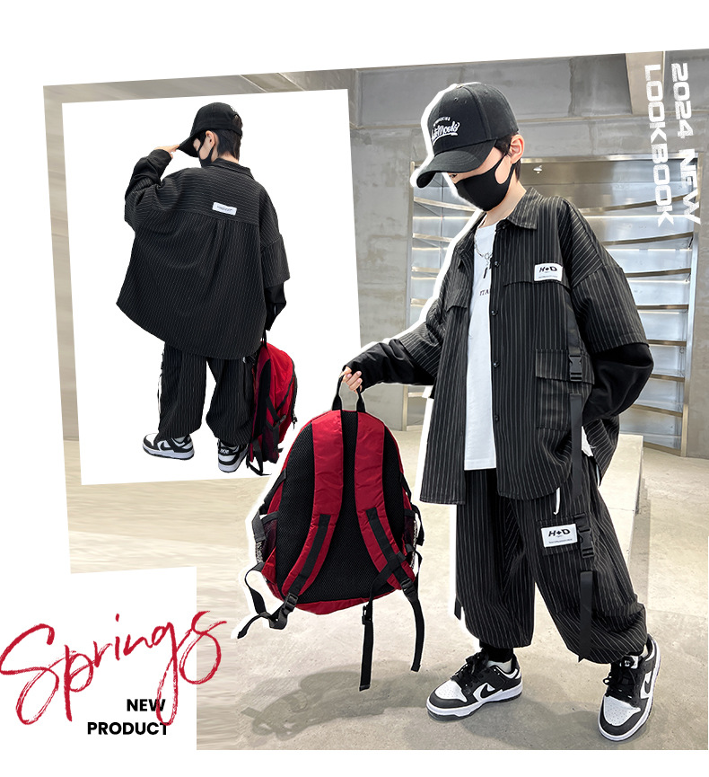 男童西装套装春季新款2024中大童宽松个性嘻哈两件套男孩春秋装潮