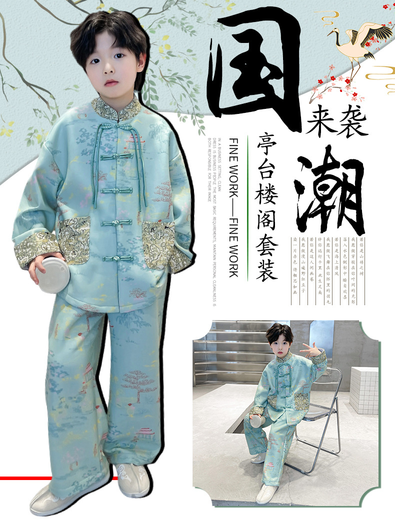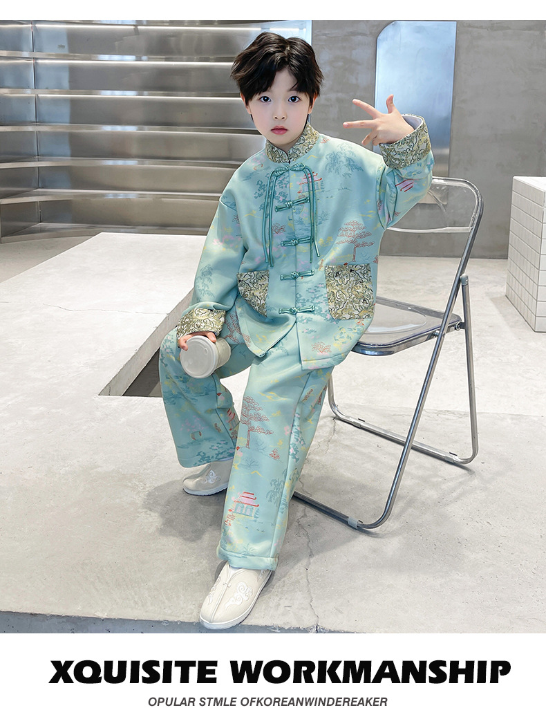 男童春装汉服套装2024新款中大童儿童春秋款唐装国风新中式两件套
