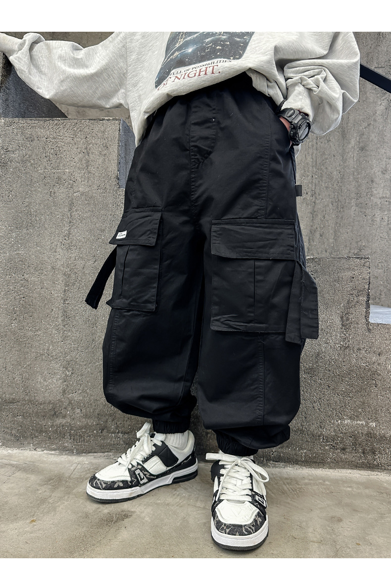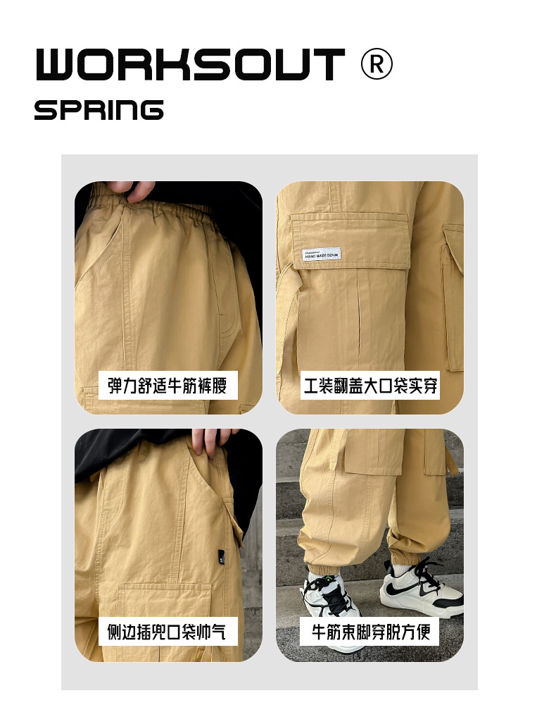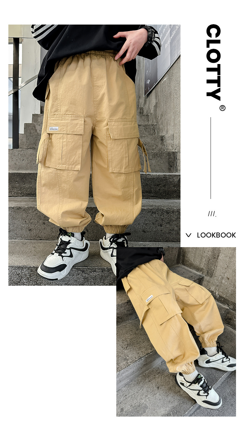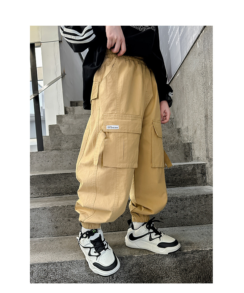 男童休闲裤子男孩工装裤2024新款中大童春秋季纯色休闲裤春装帅气