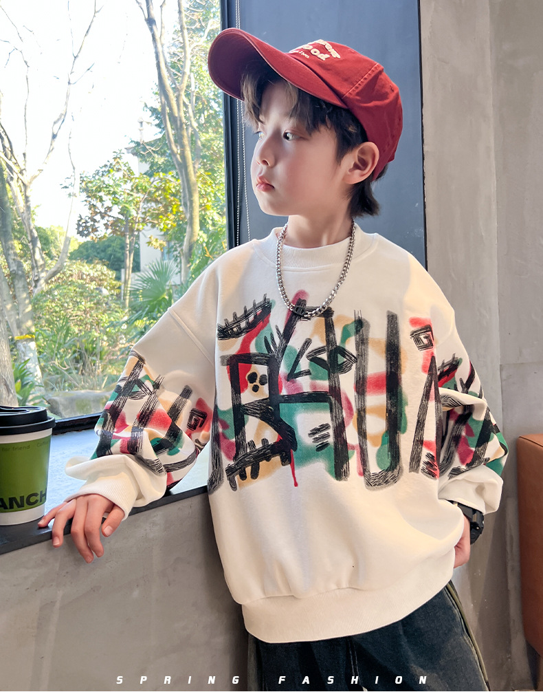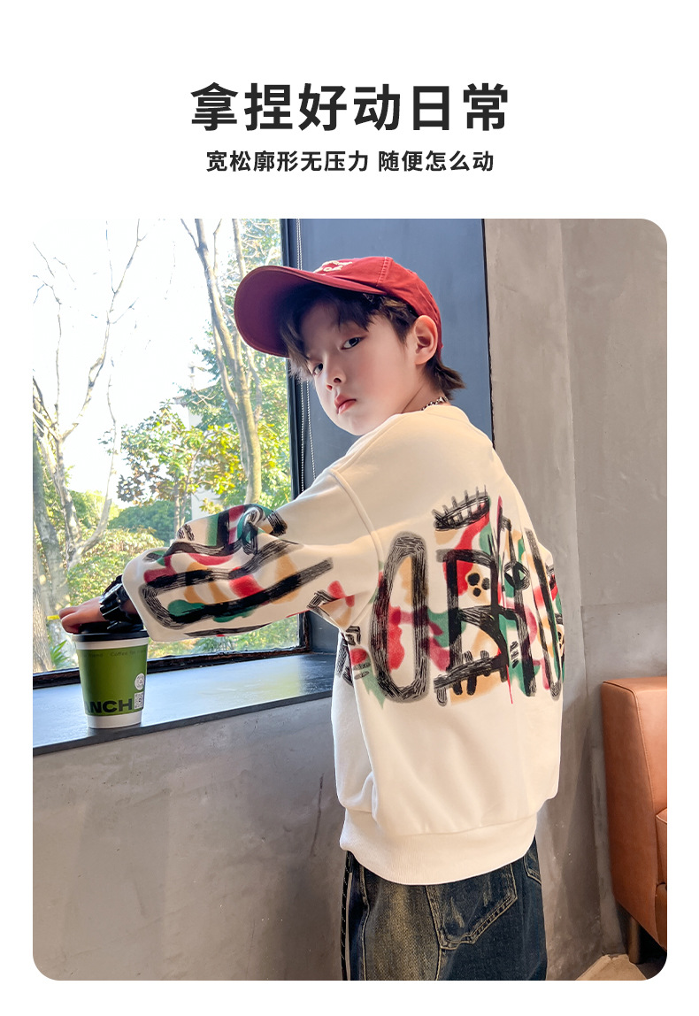 男童帅气炸街卫衣春秋款2024新款中大童男孩个性打底衫上衣春季潮