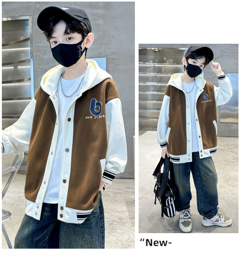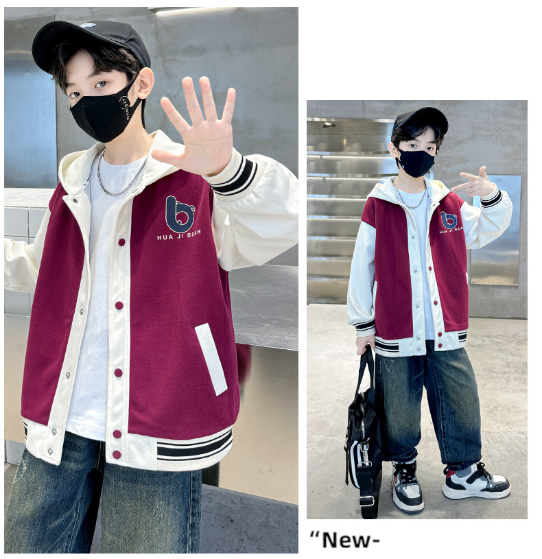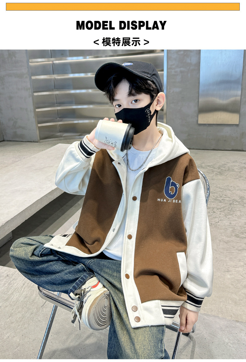 儿童棒球服春装新款2024中大童连帽上衣男童休闲春秋款男童外套潮
