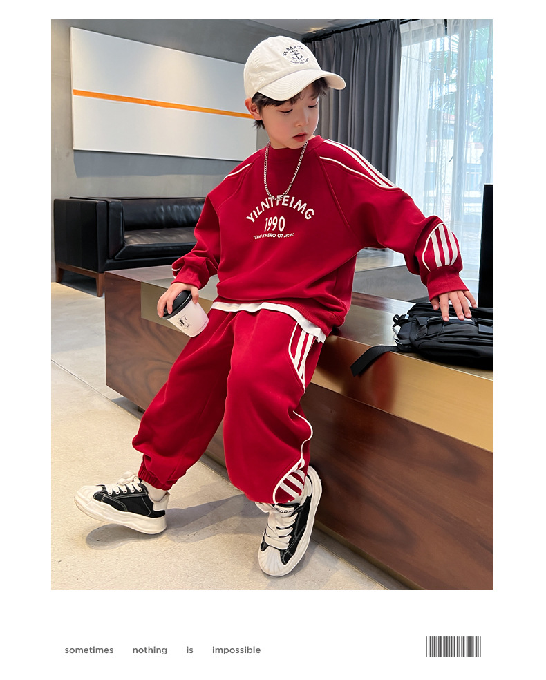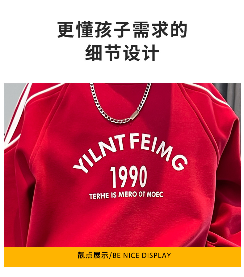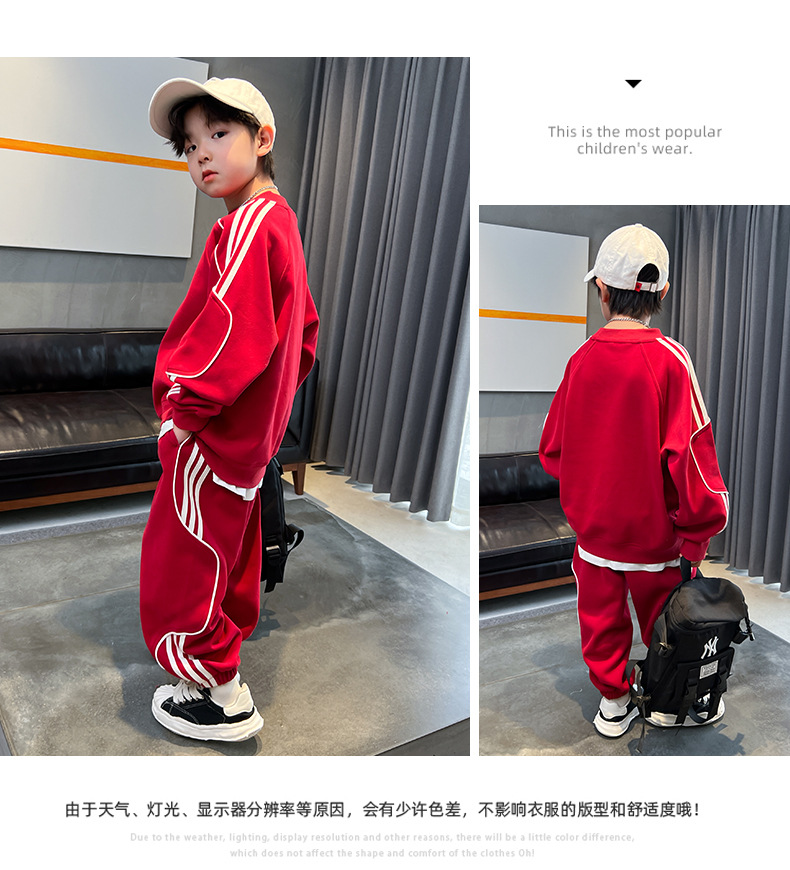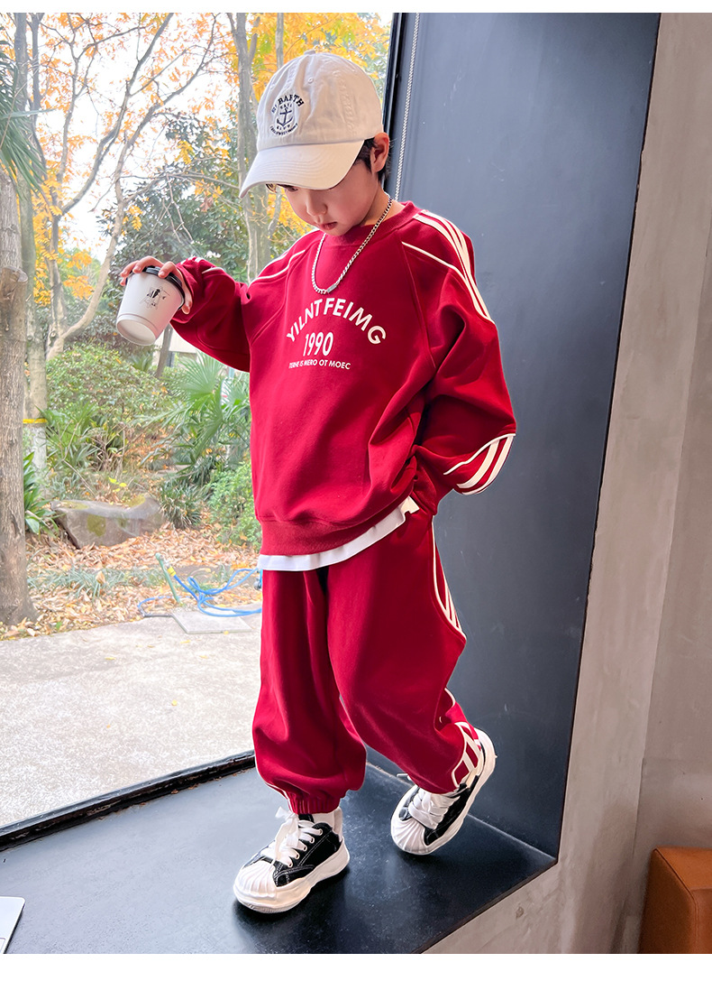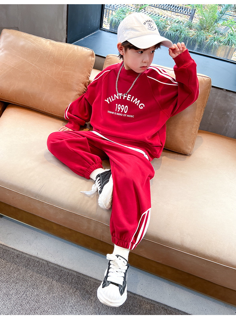 男童春装红色卫衣套装2024新款中大儿童春秋款运动服帅气新年衣服
