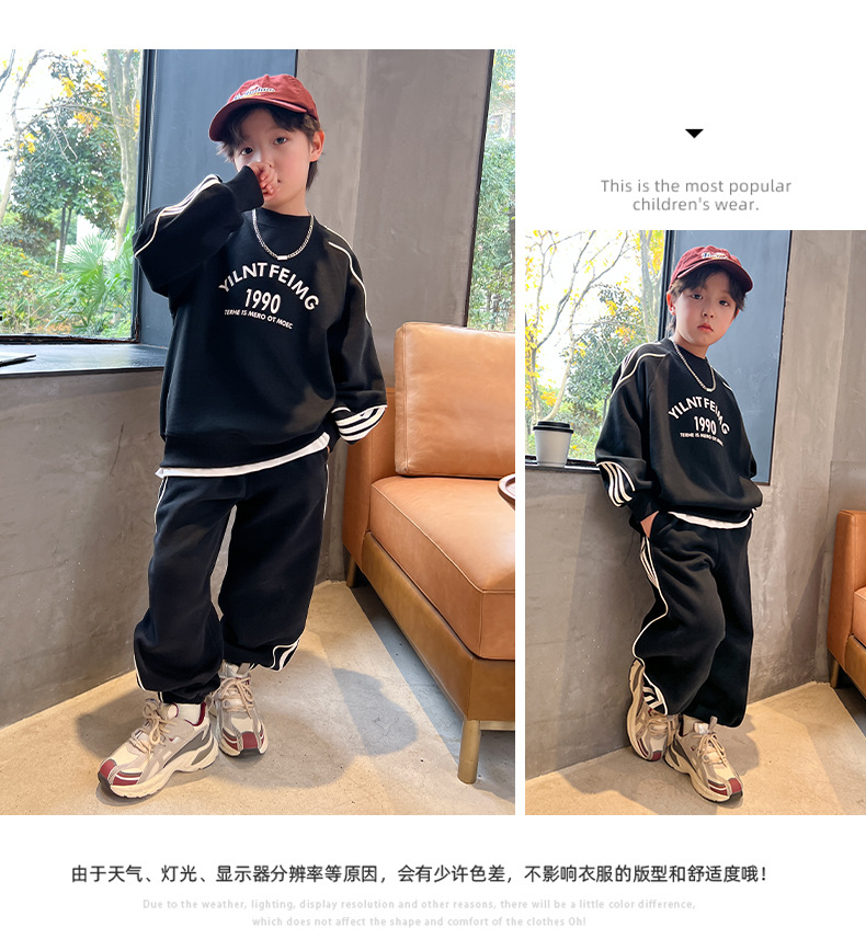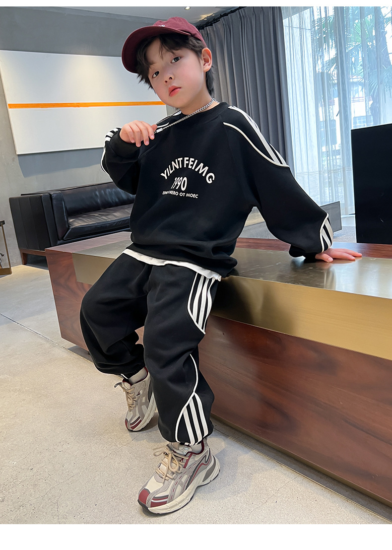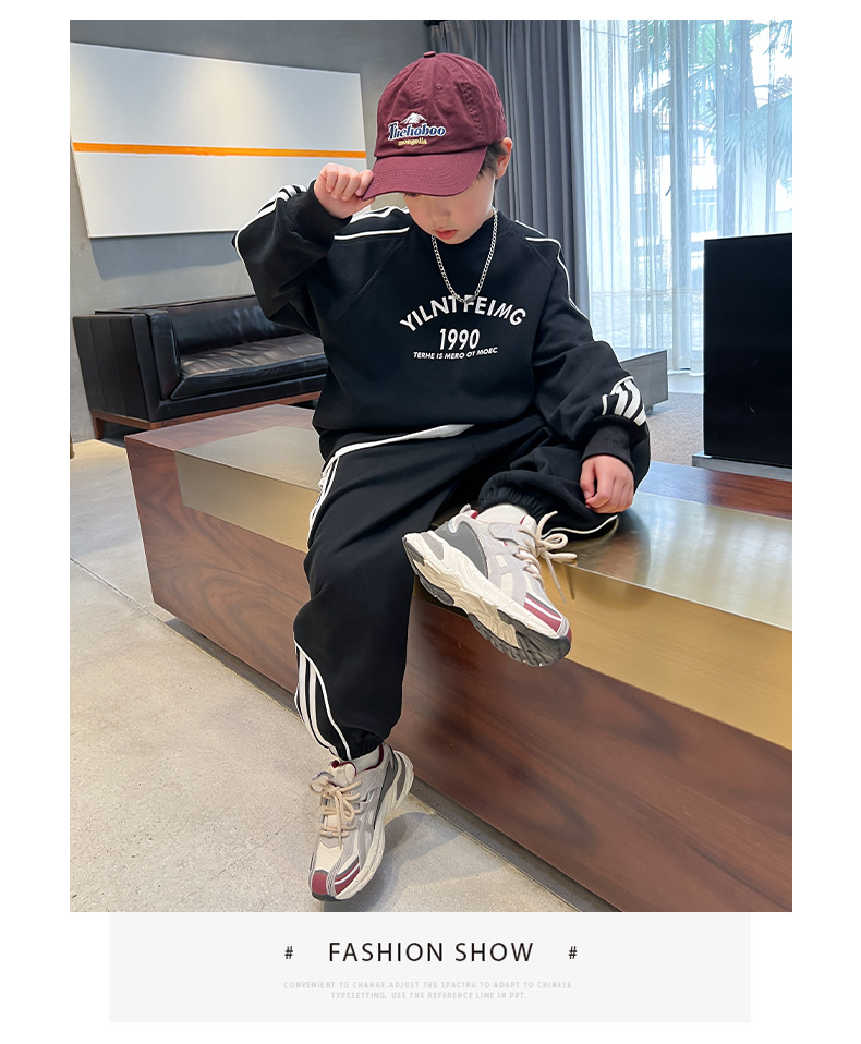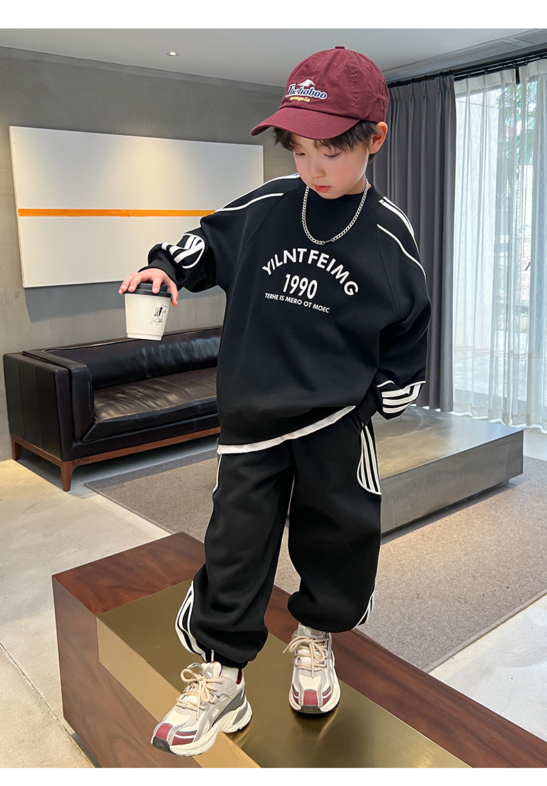 男童春装红色卫衣套装2024新款中大儿童春秋款运动服帅气新年衣服