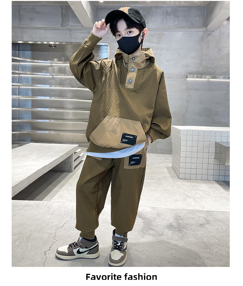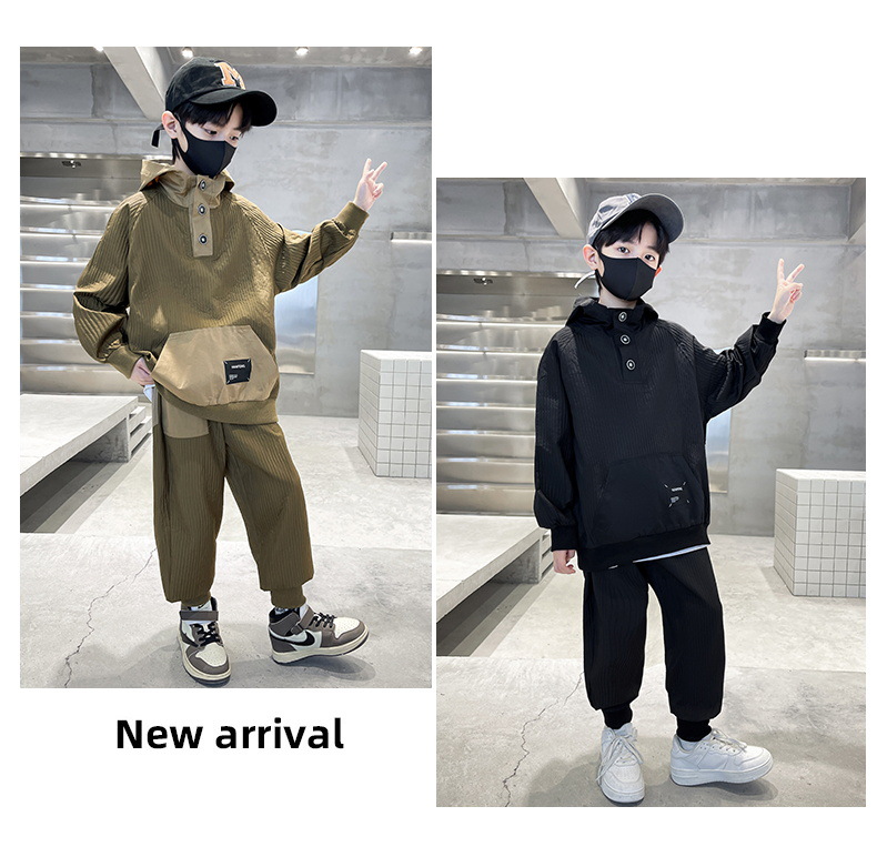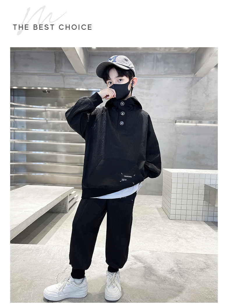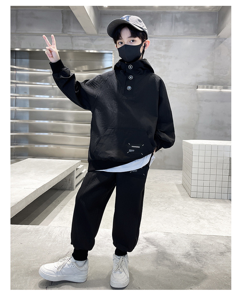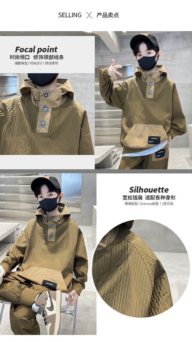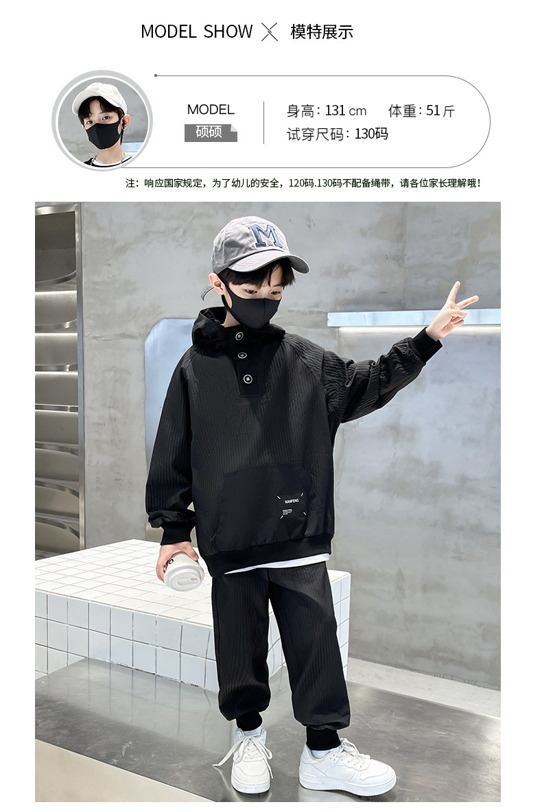 男童连帽套装春秋装2024新款中大童个性潮牌外套两件套儿童衣服酷