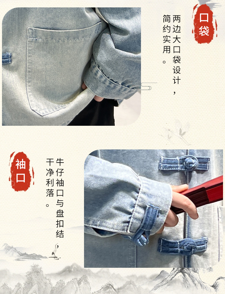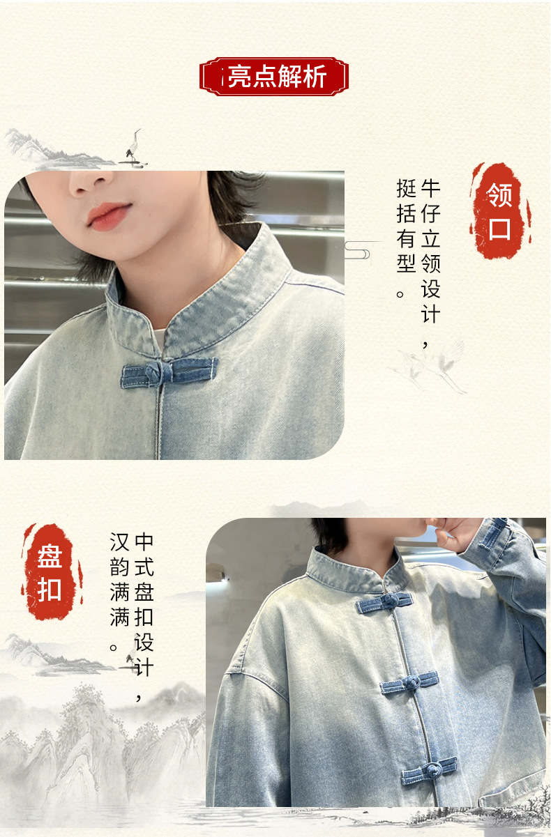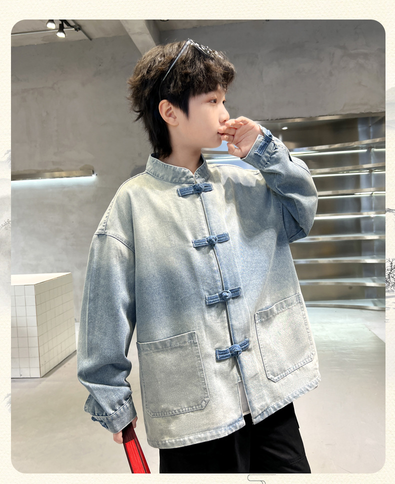 儿童古装汉服牛仔外套2024新款春季演出服男孩中国风少爷唐装上衣