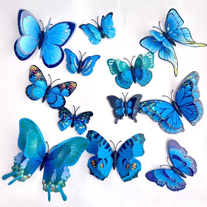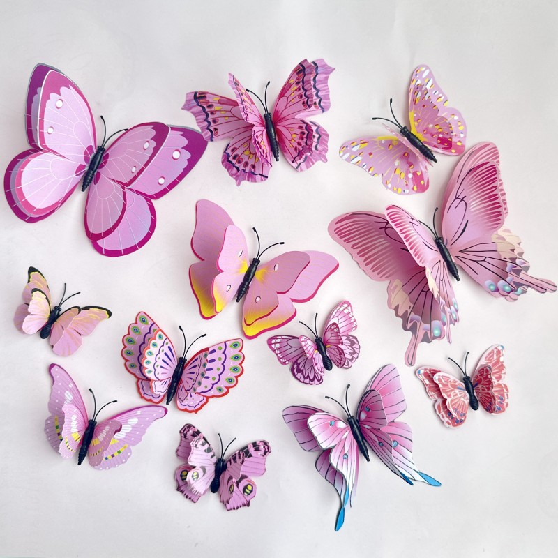 跨境3D立体仿真蝴蝶蛋糕装饰PVC蝴蝶蛋糕插件塑料片蝴蝶蛋糕装饰