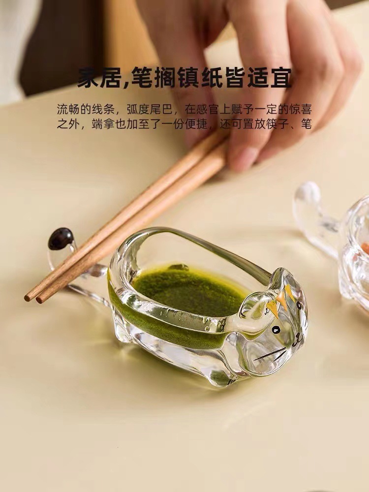 猫咪水晶玻璃调味蘸料碟创意番茄酱油醋碟家用小吃碟子筷子托