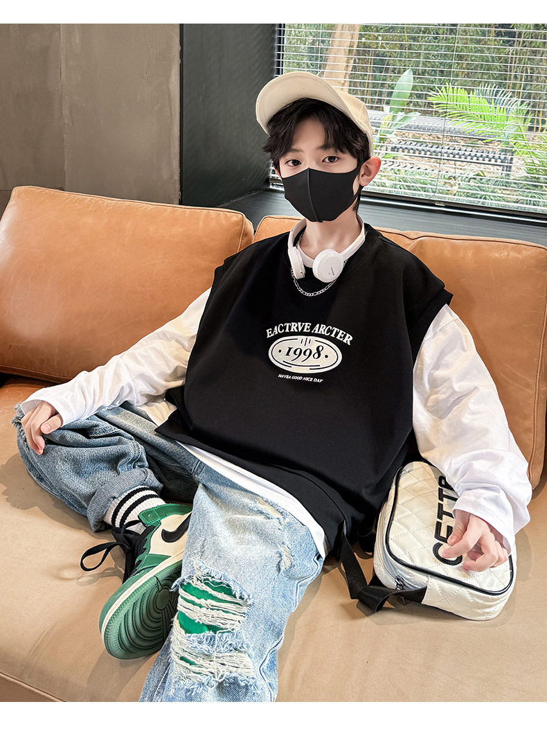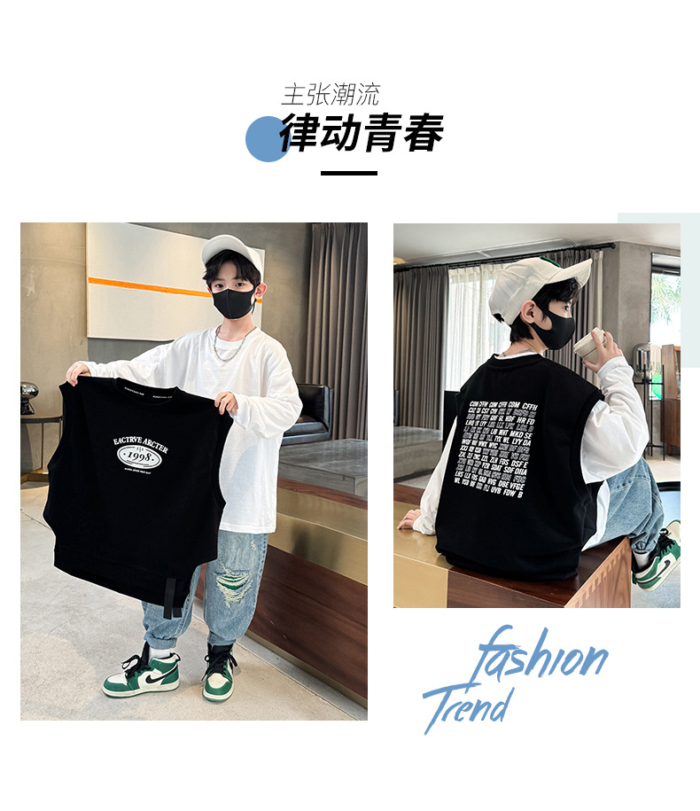 男童两件套卫衣春装2024新款中大儿童运动休闲打底衫马甲套装春款