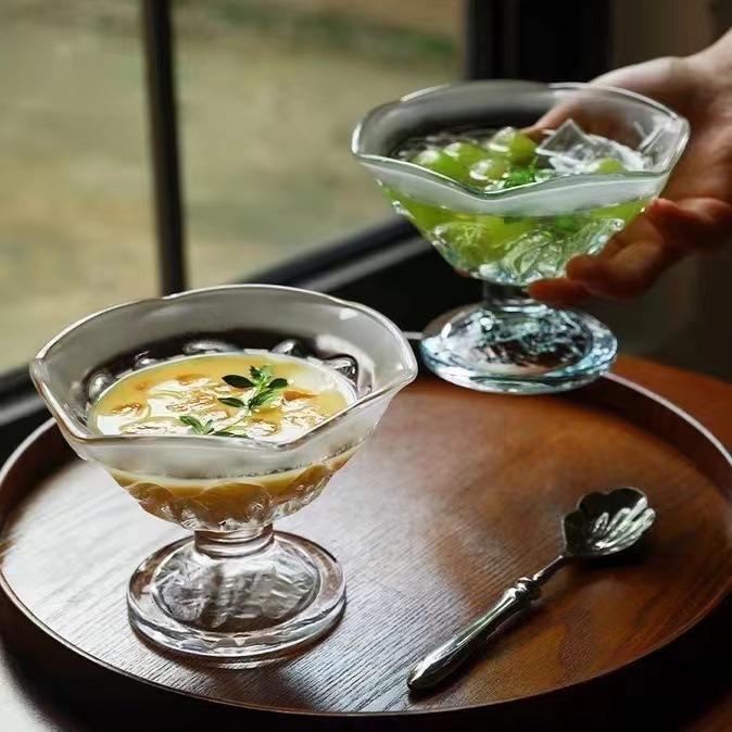 网红高脚雪糕冰淇淋杯玻璃甜品碗酸奶水果布丁冰激凌玻璃杯子
