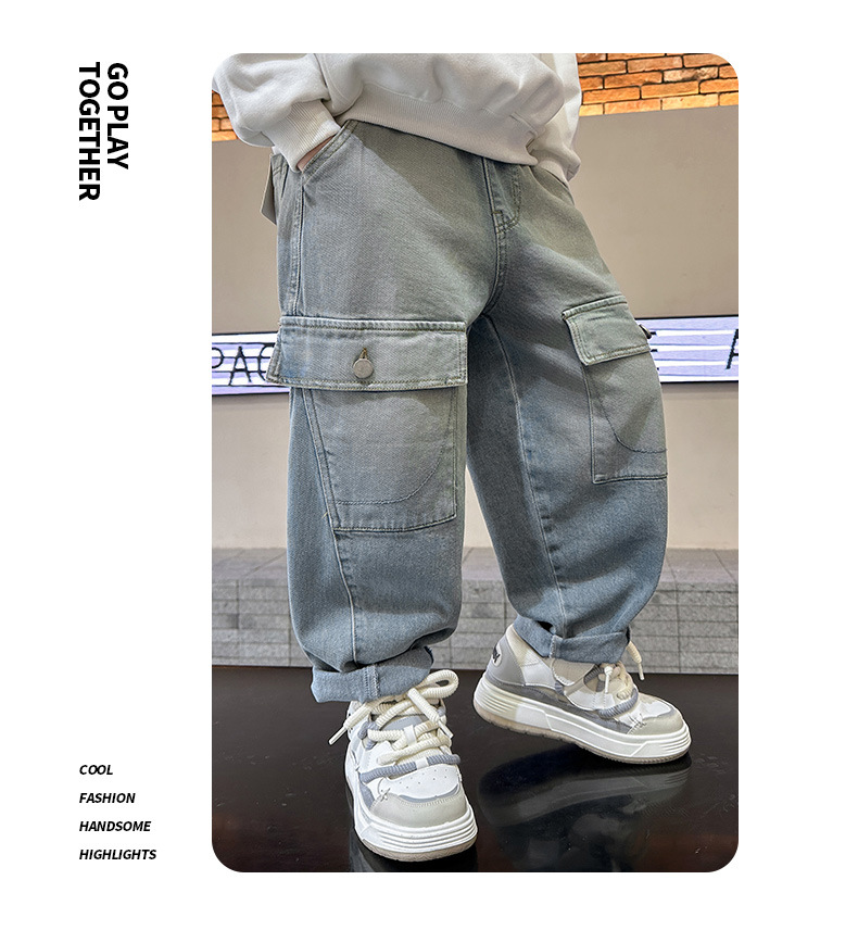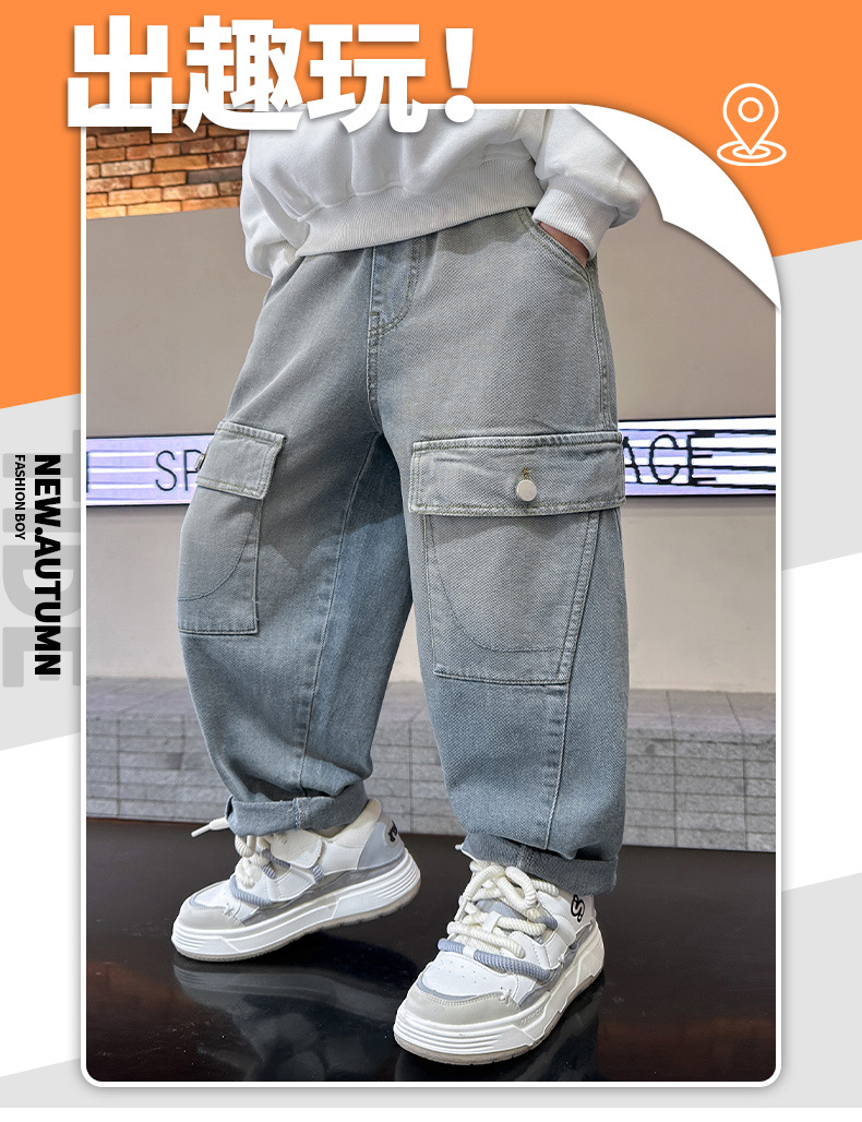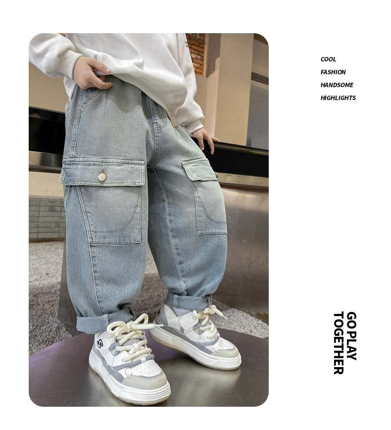 男童工装牛仔裤春装2024新款儿童春季裤子潮帅气时髦中大童春秋款