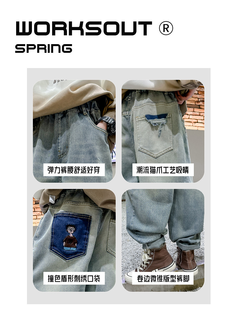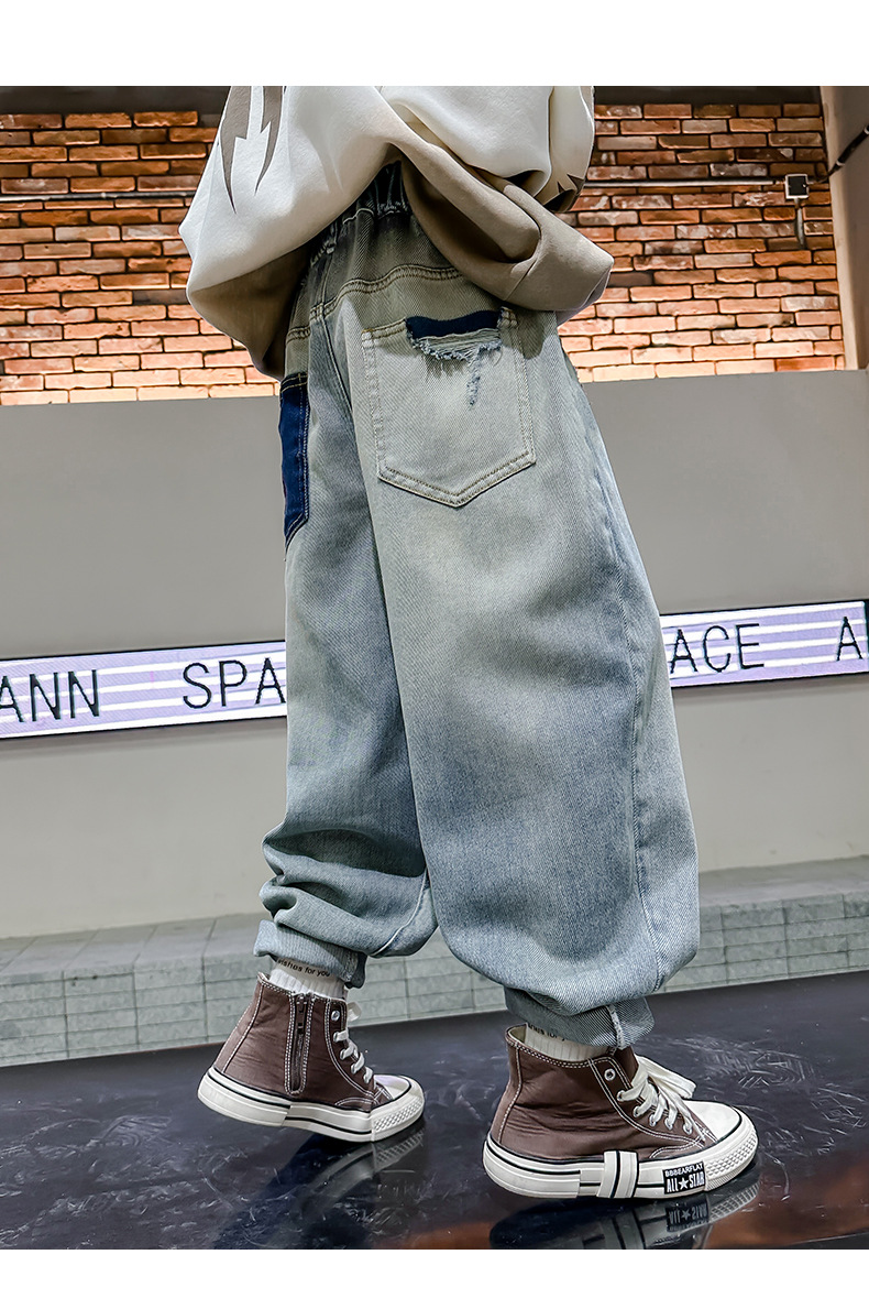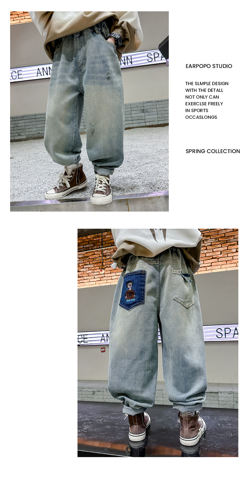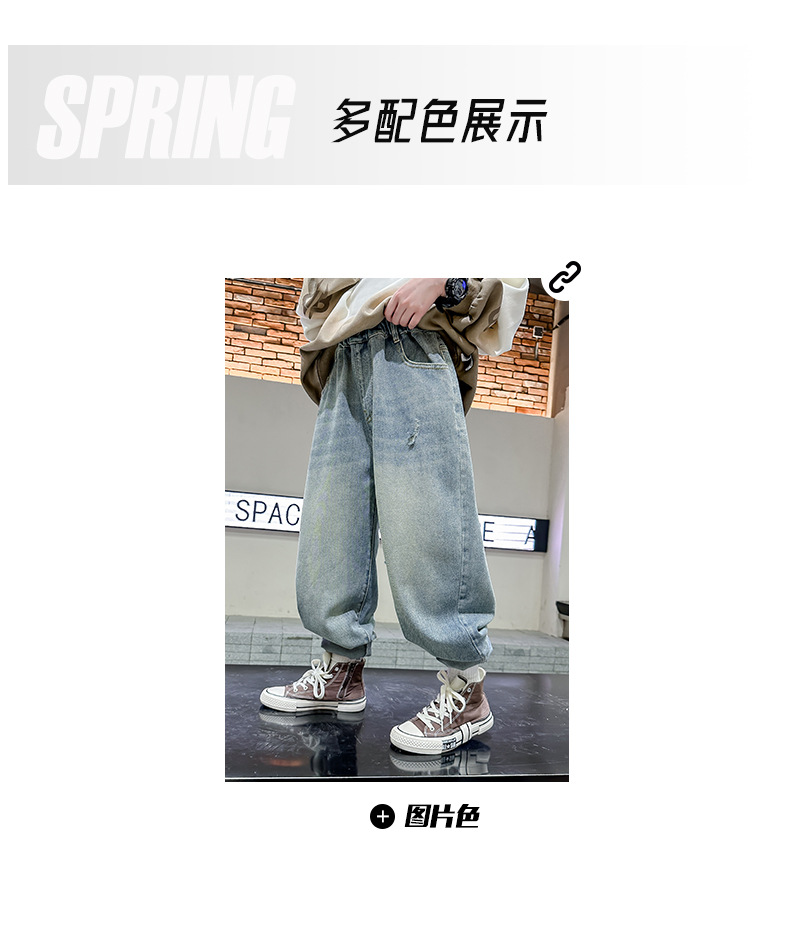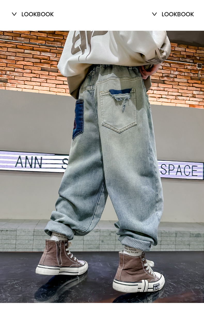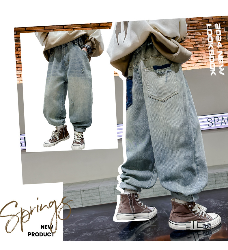男童春秋款裤子2024新款春款休闲中大童男孩直筒阔腿裤儿童牛仔裤