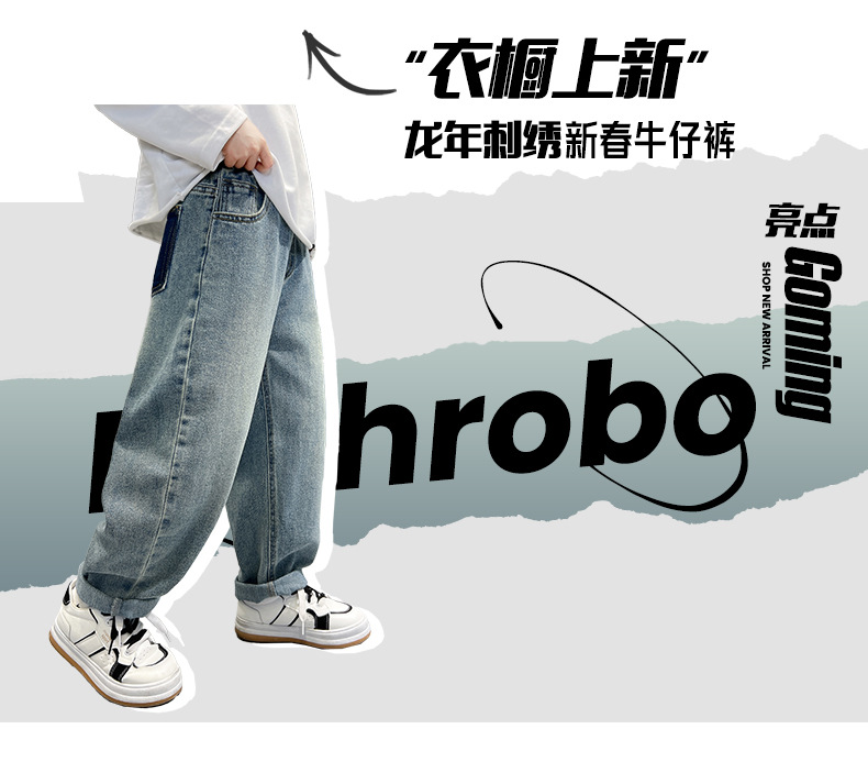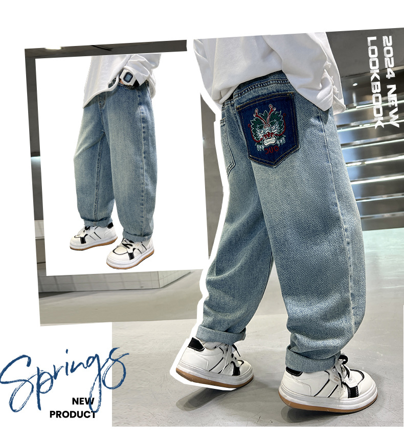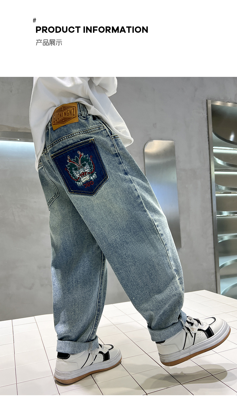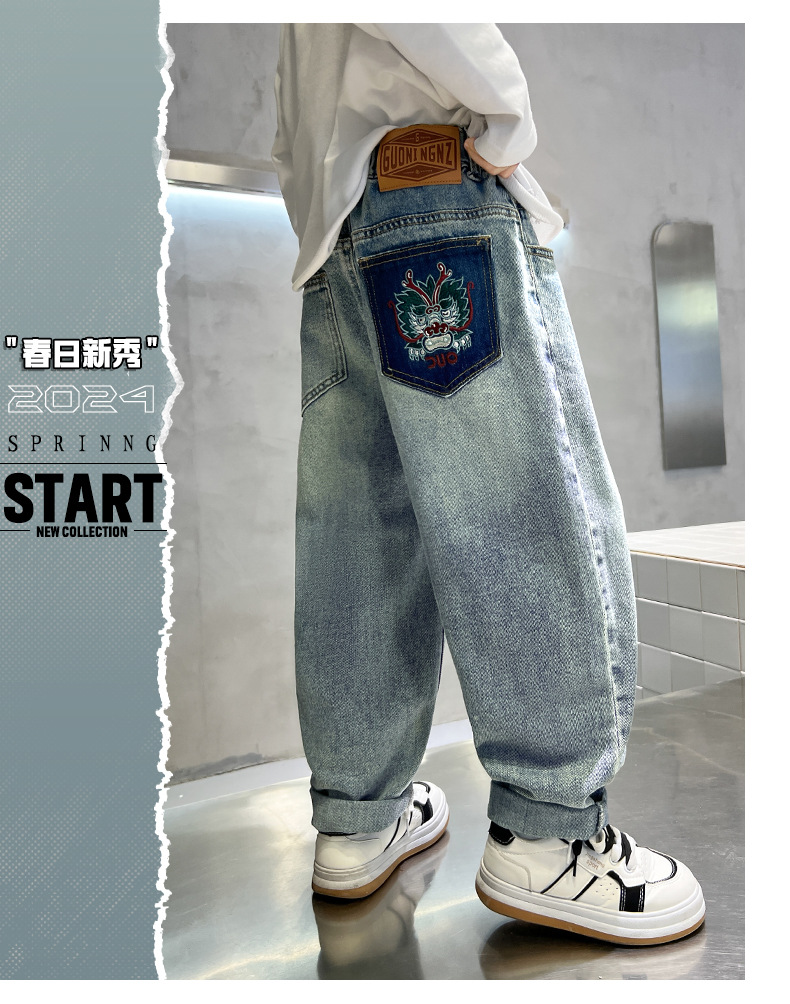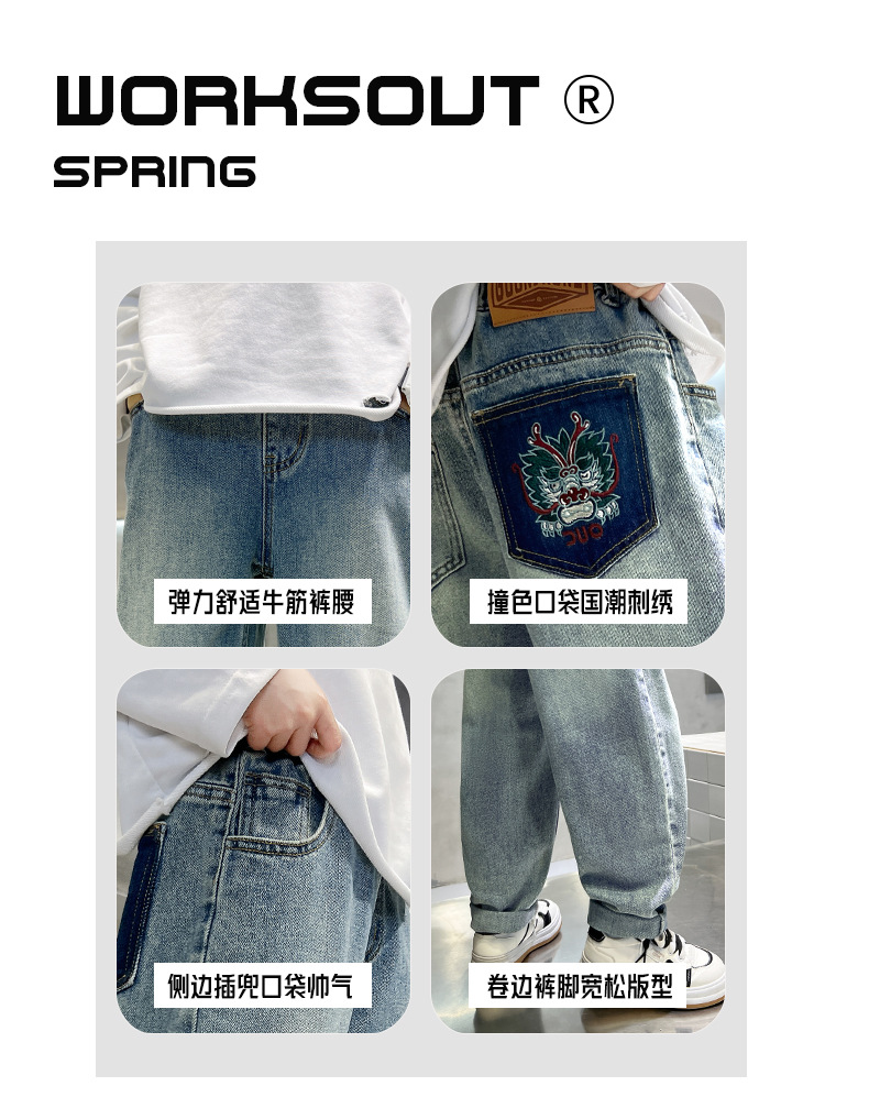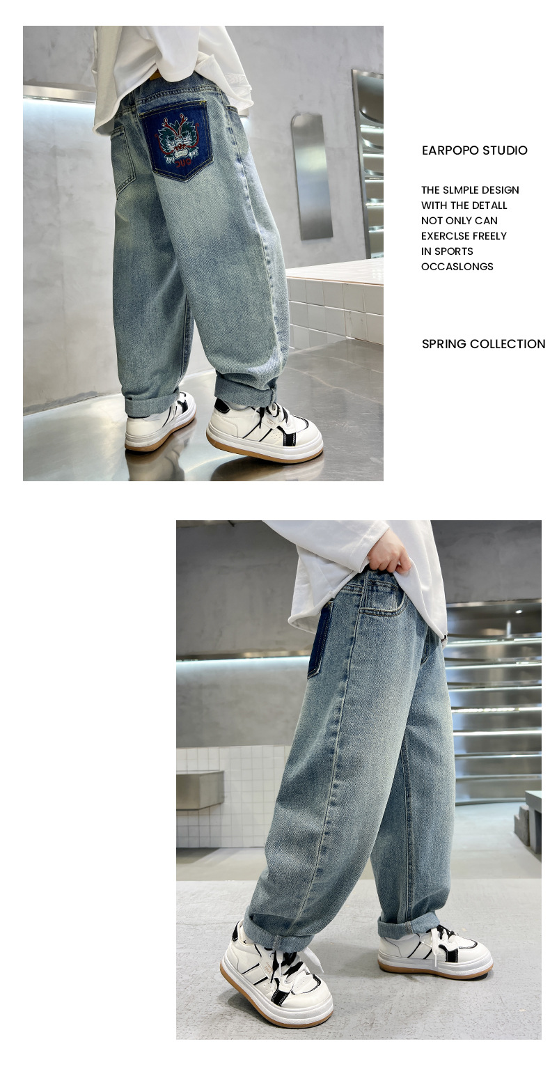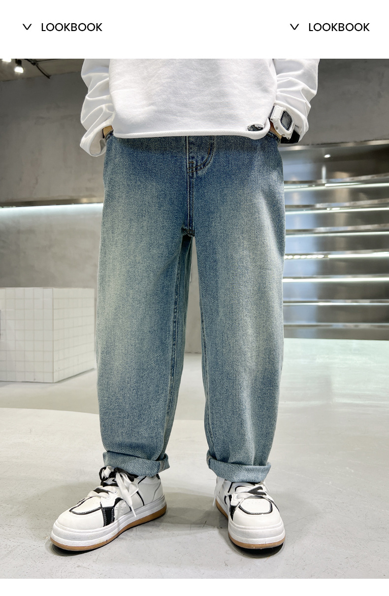 痞帅男童裤子春秋款新款2024新款中大儿童复古牛仔裤男孩春季长裤