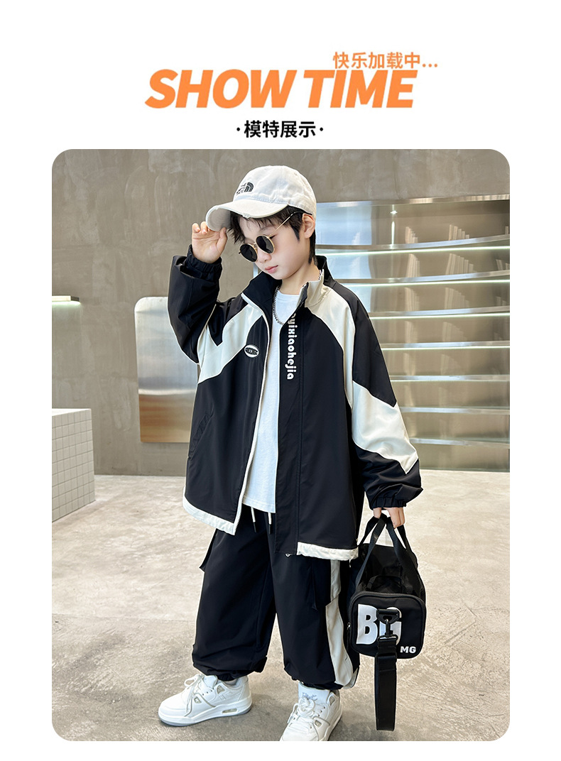 男童春款工装套装2024新款中大童男孩运动外套两件套儿童春秋装潮