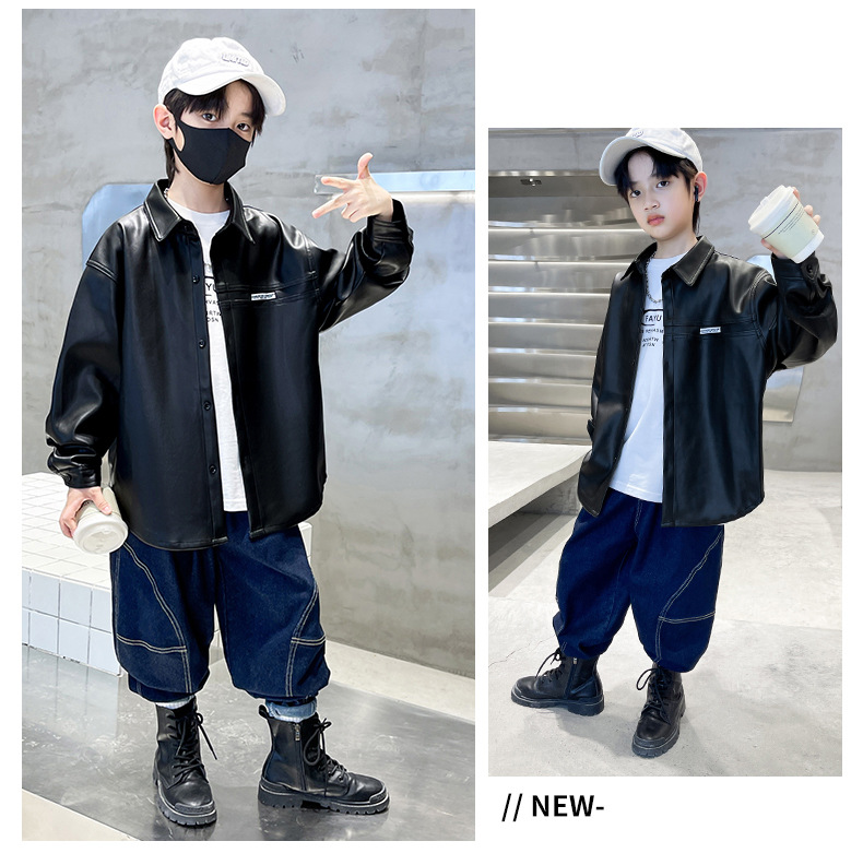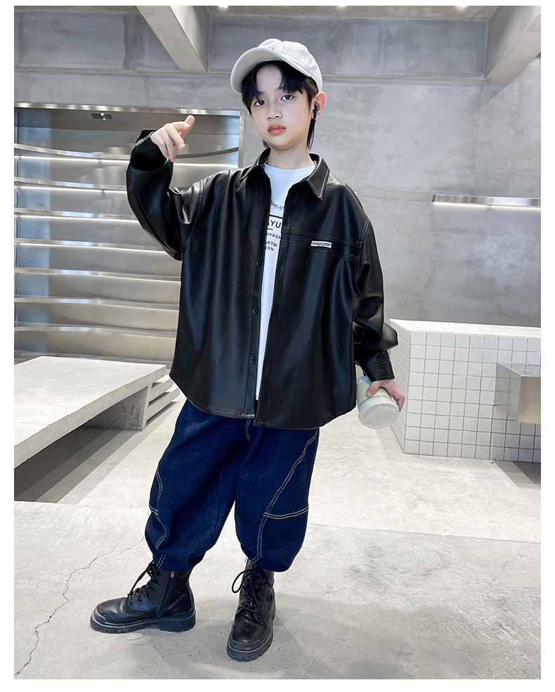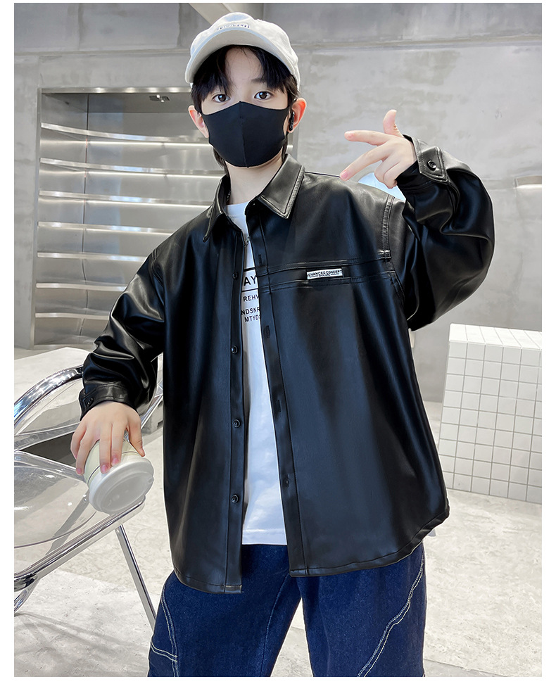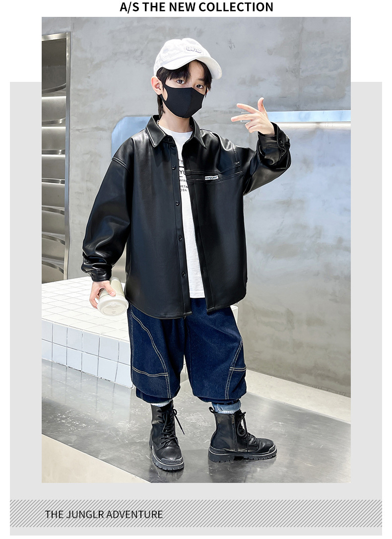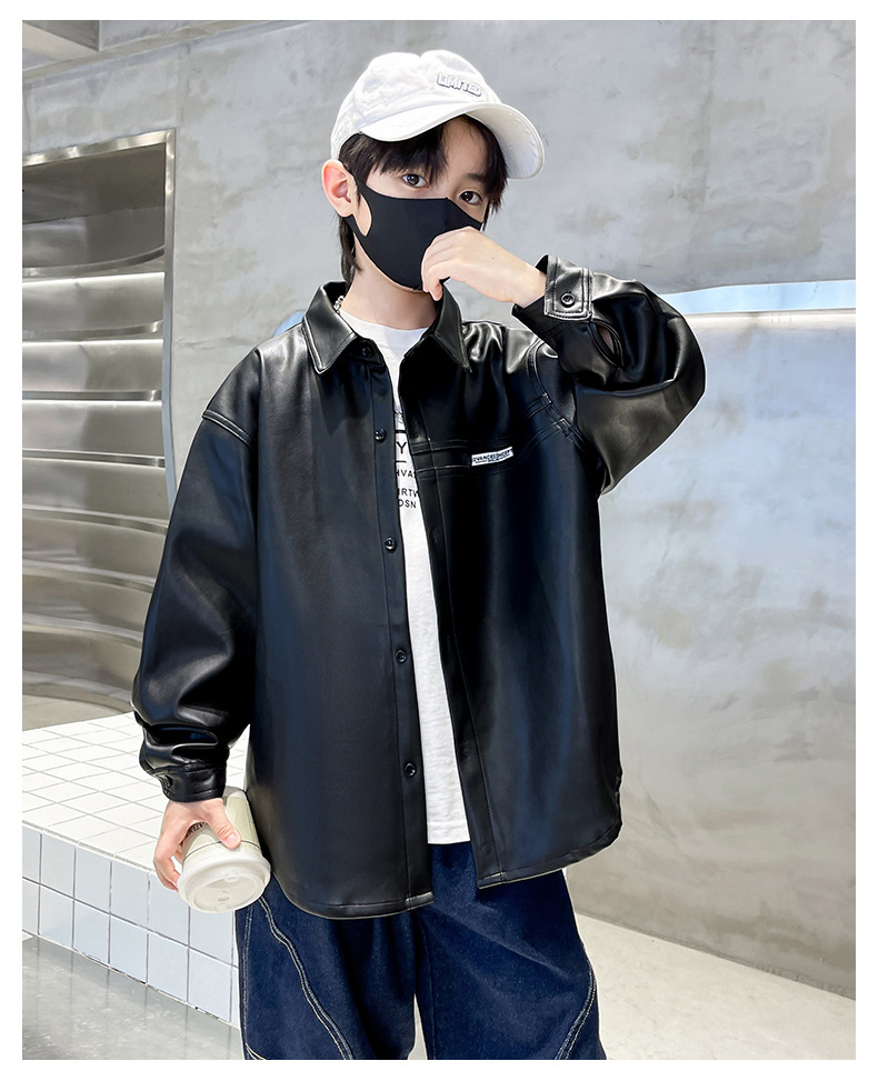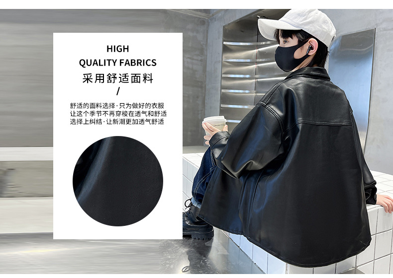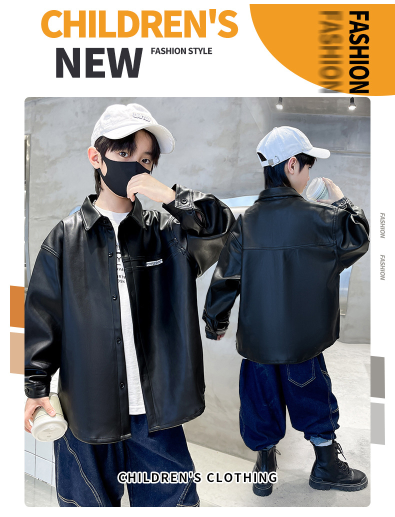 儿童皮衣外套春秋季2024新款男童机车皮夹克洋气中大童加绒潮春装