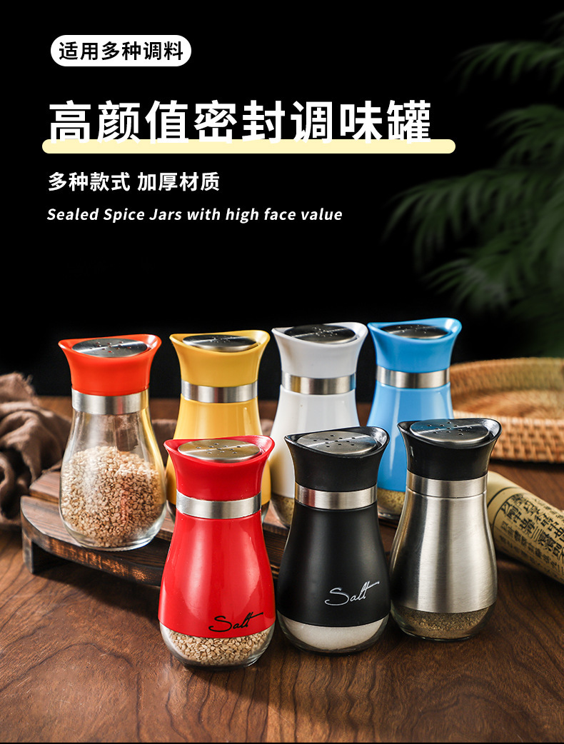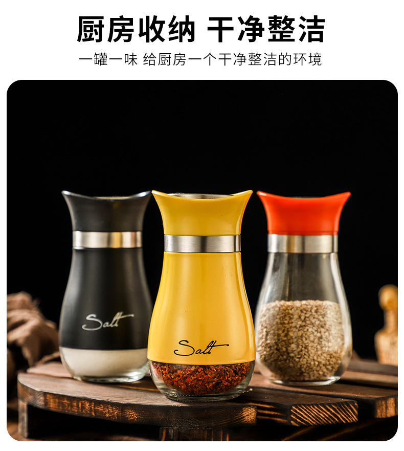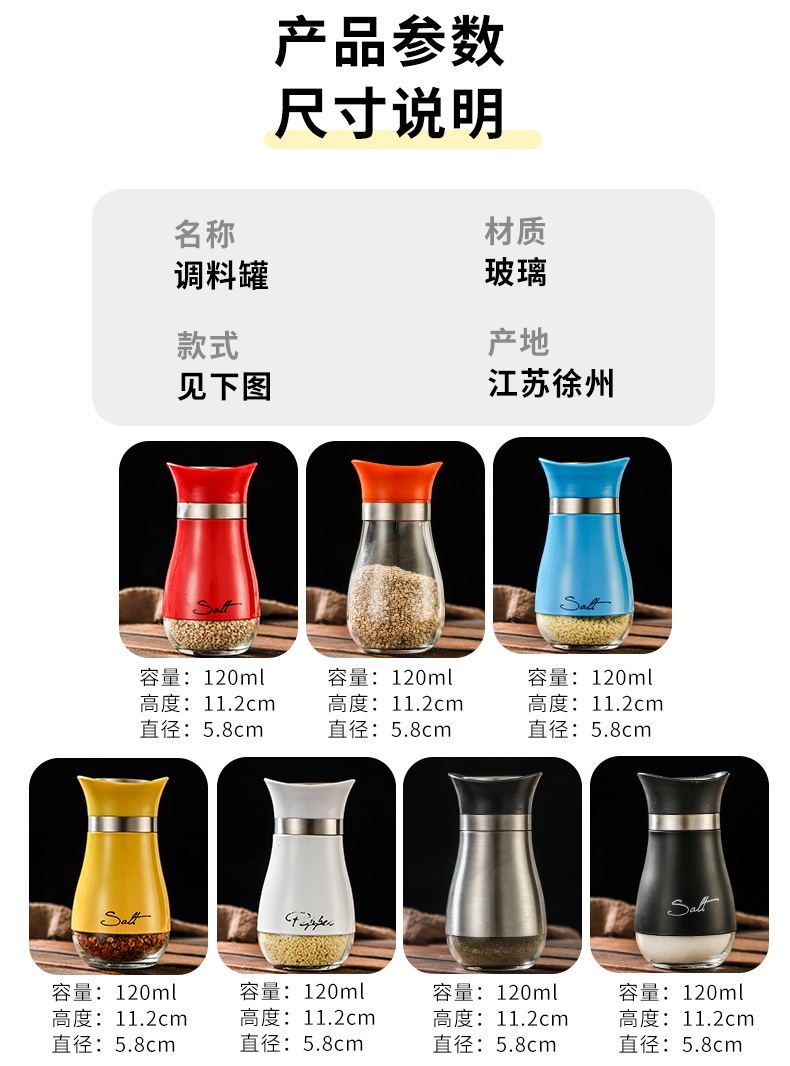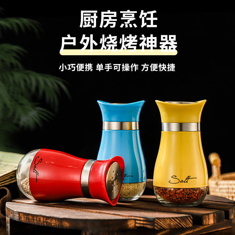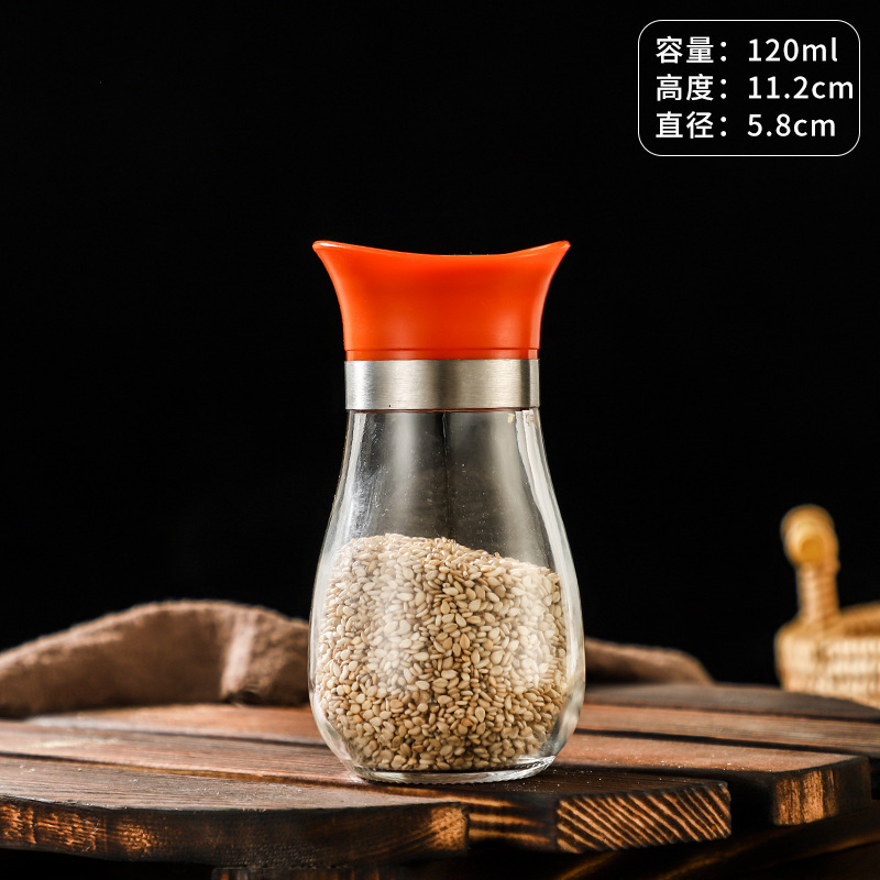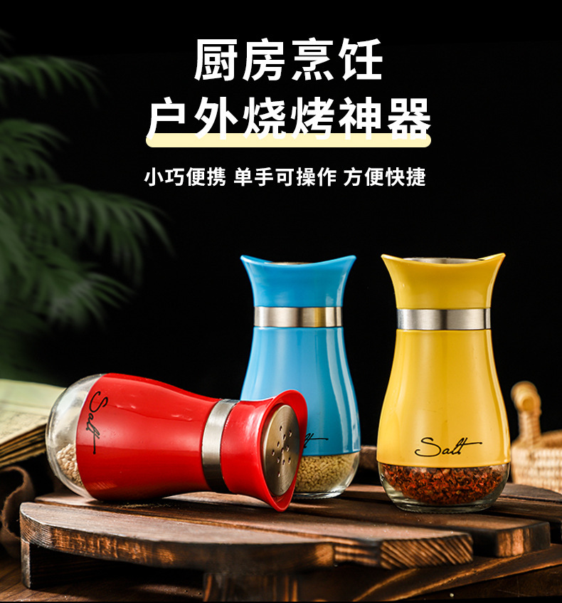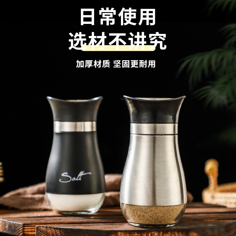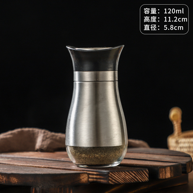 不锈钢玻璃调味瓶120ml密封玻璃调料瓶皮套不锈钢烧烤撒料瓶