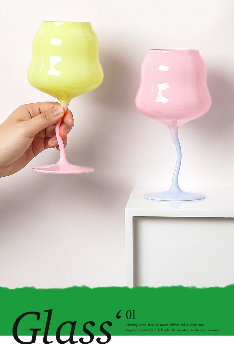 高颜值创意彩色高脚杯水晶杯马卡龙扭扭杯女士可爱水杯酒杯果汁杯