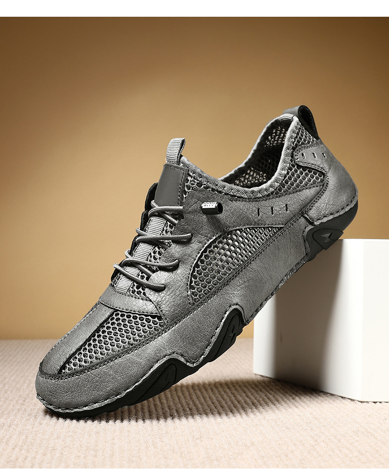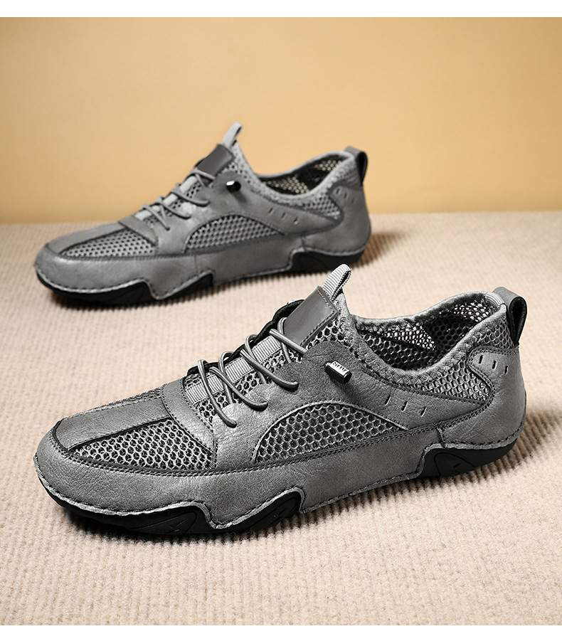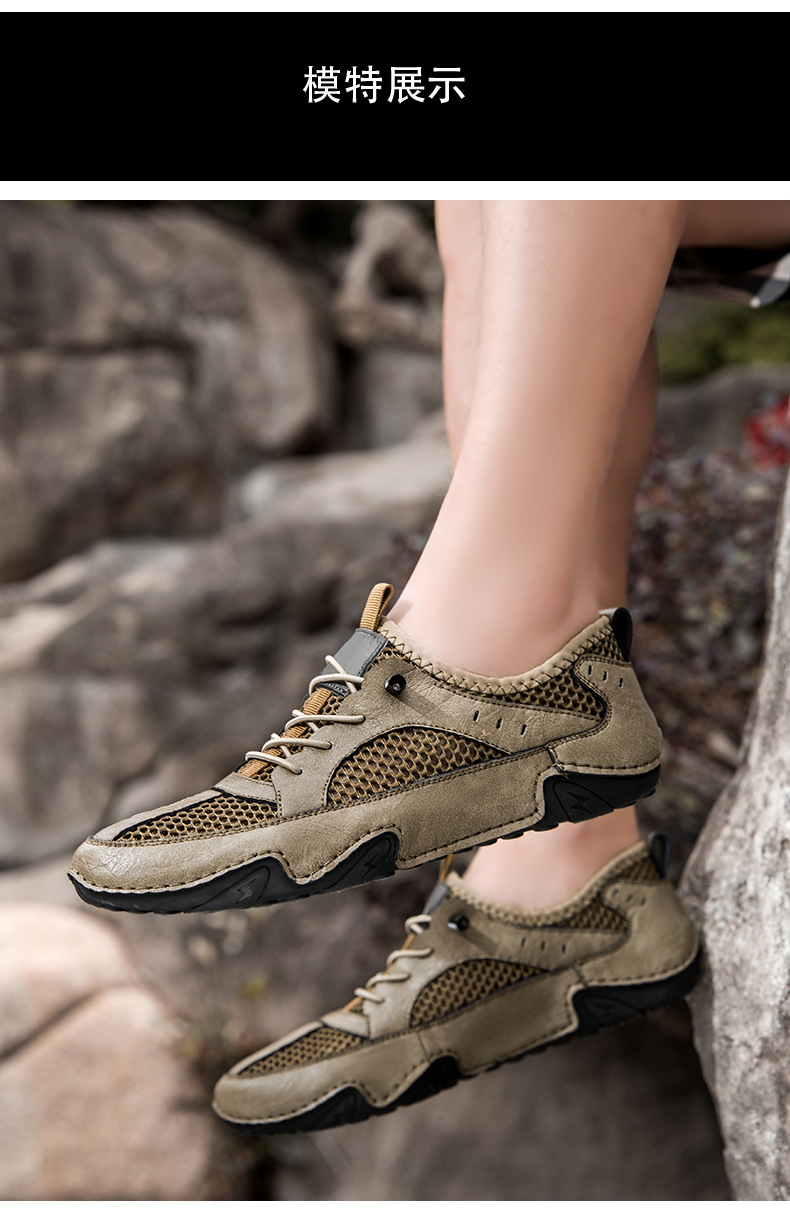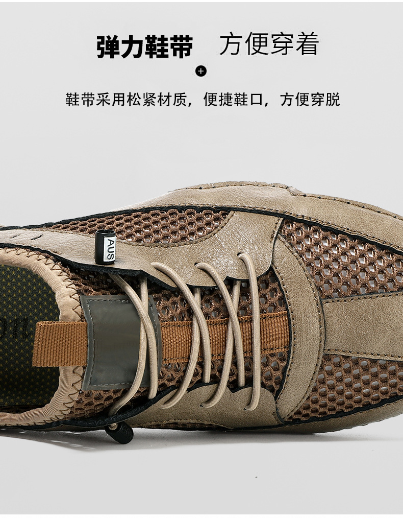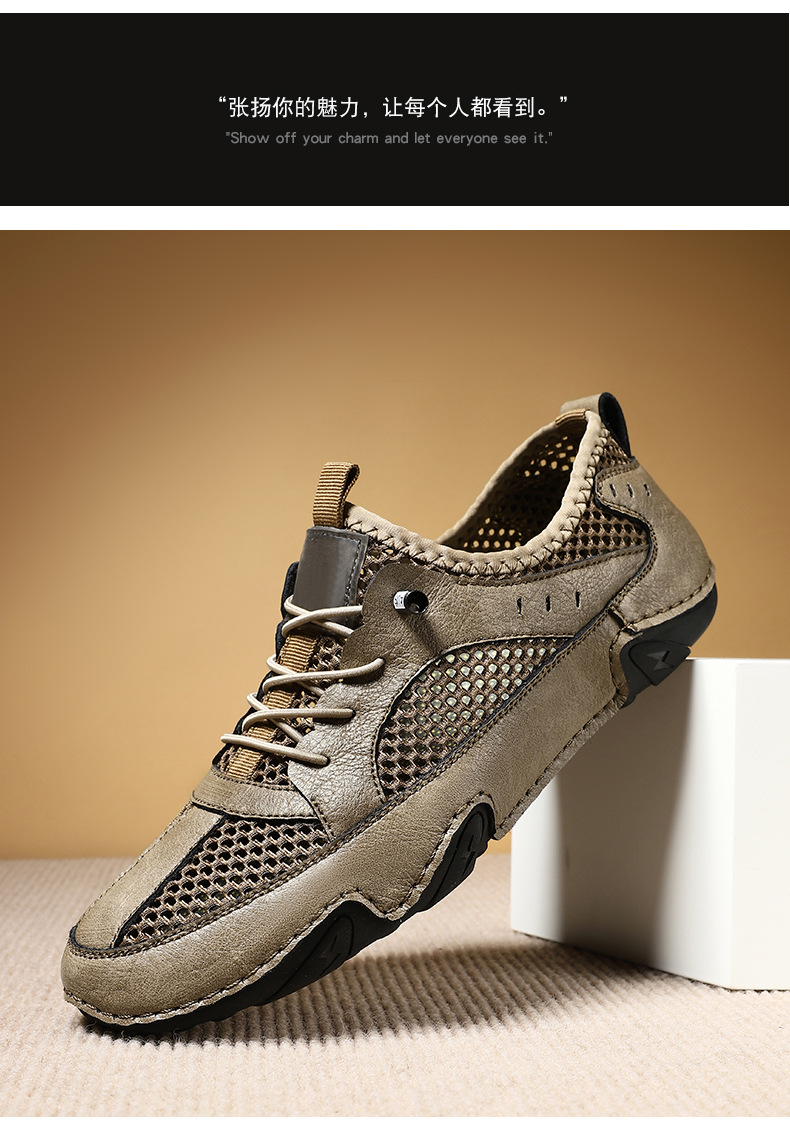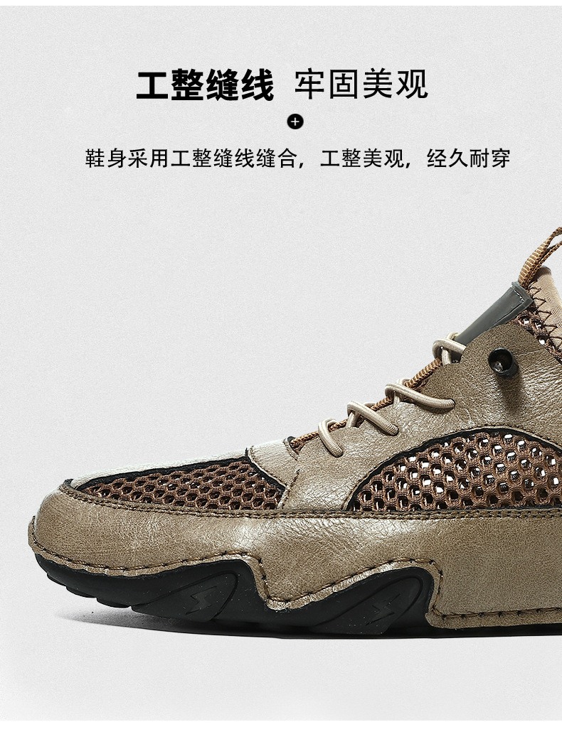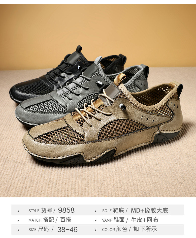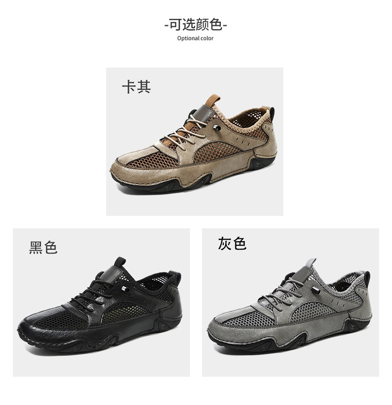 真皮牛皮跨境新款男士休闲运动鞋大码缝制透气网面鞋八爪鱼男鞋子