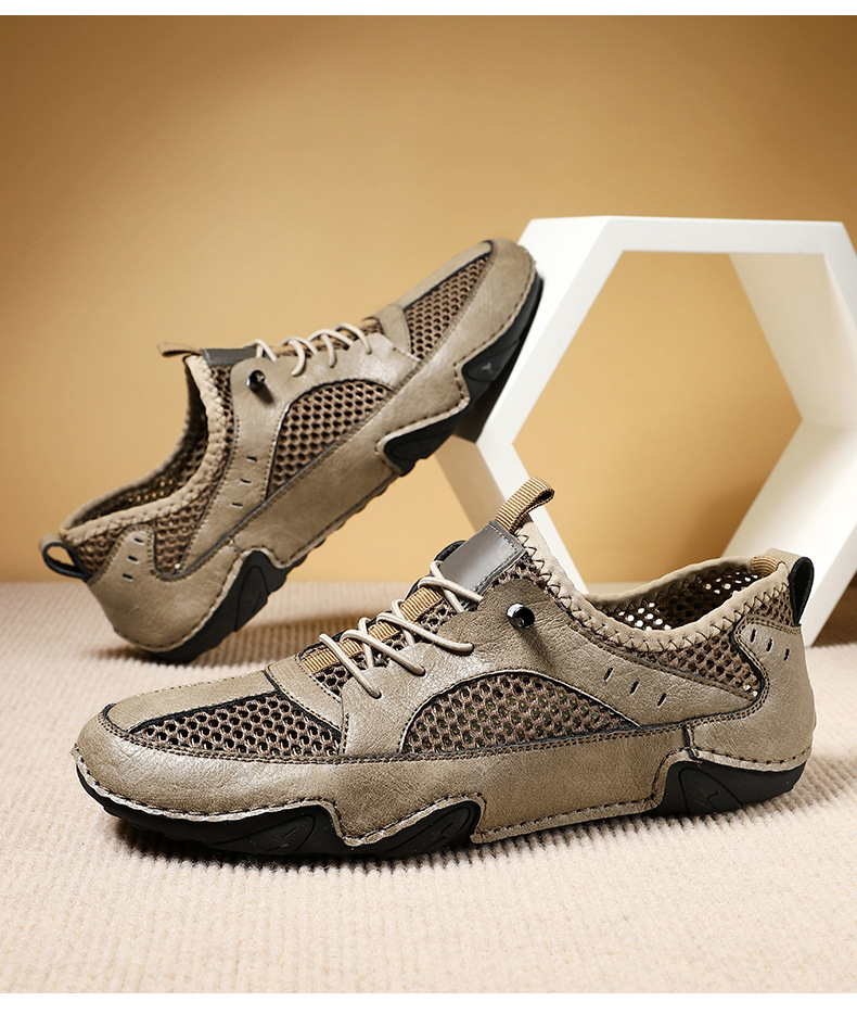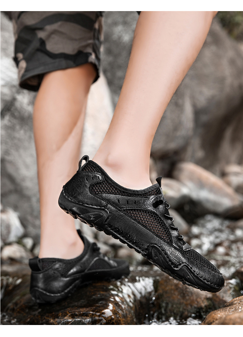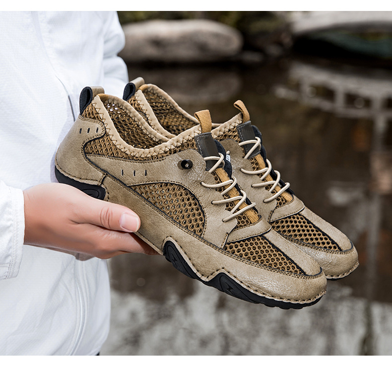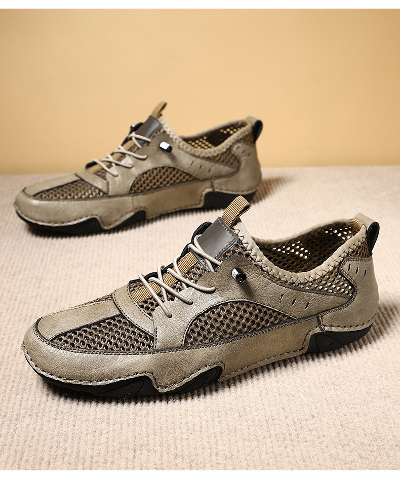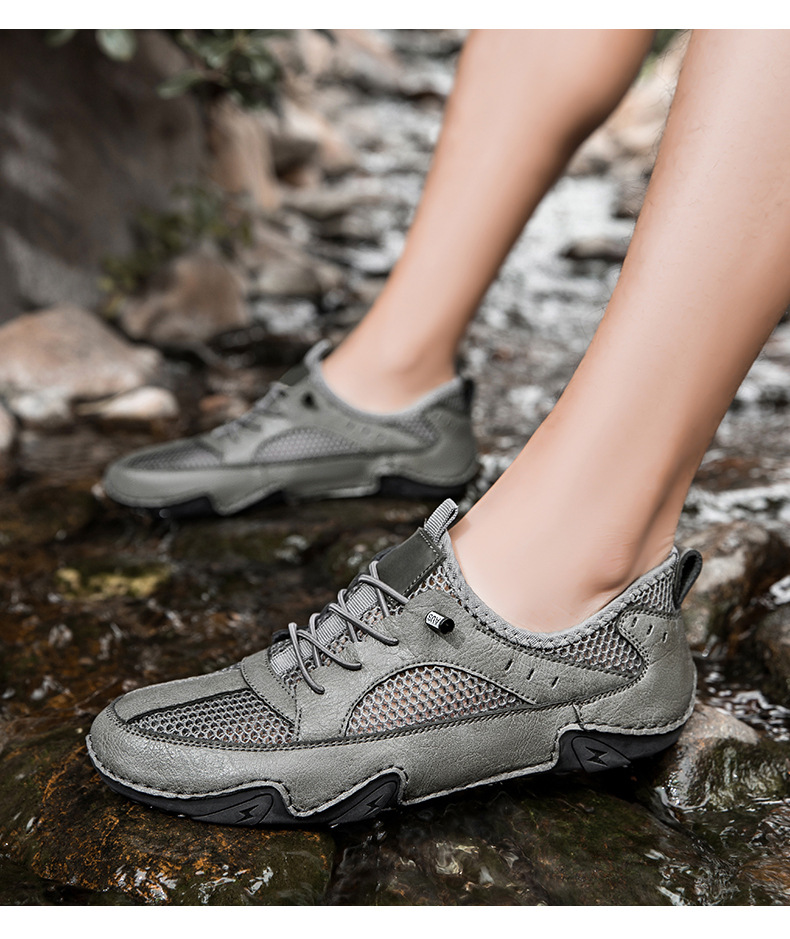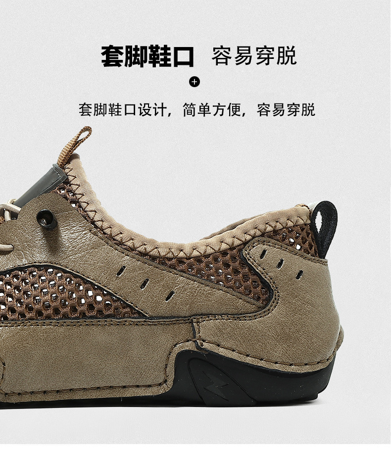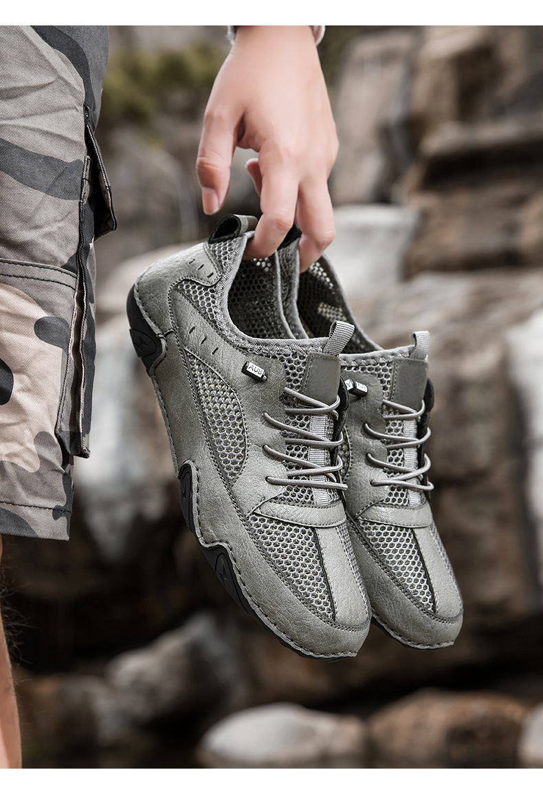 真皮牛皮跨境新款男士休闲运动鞋大码缝制透气网面鞋八爪鱼男鞋子