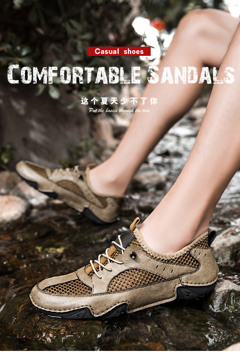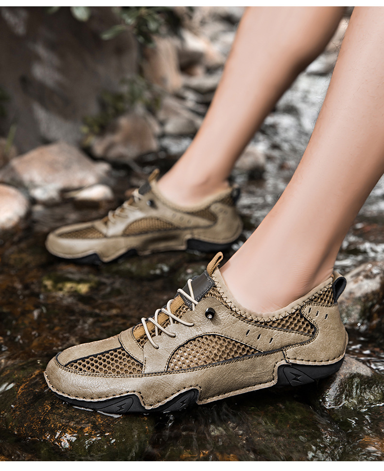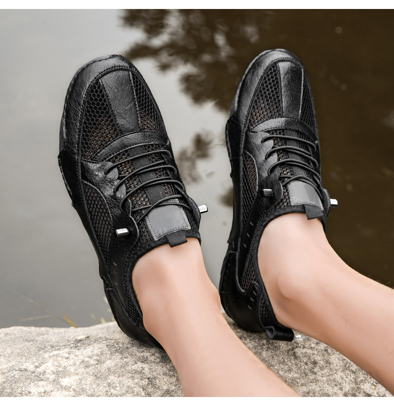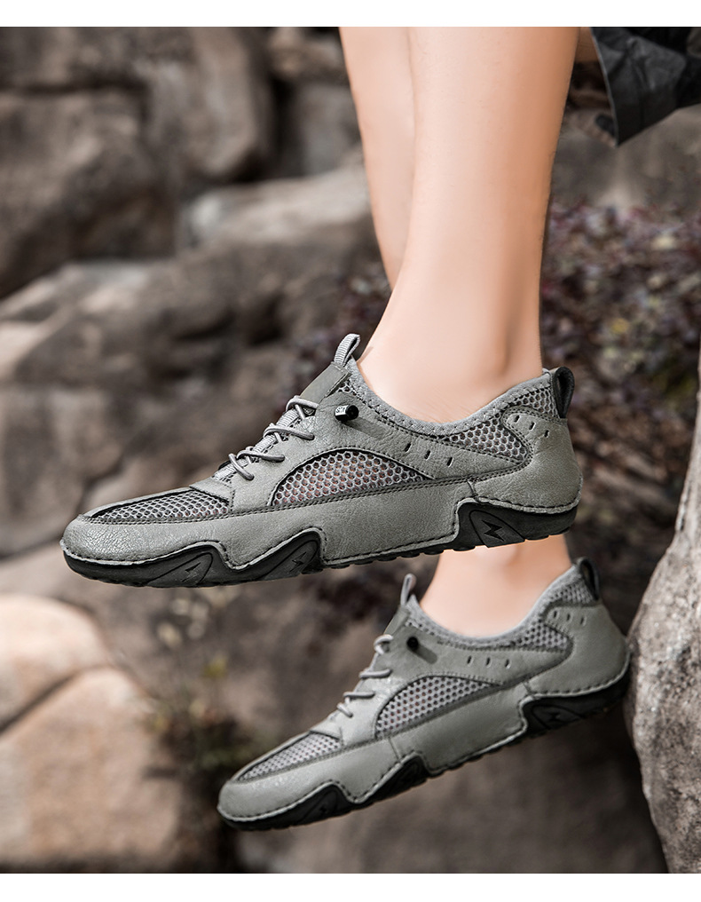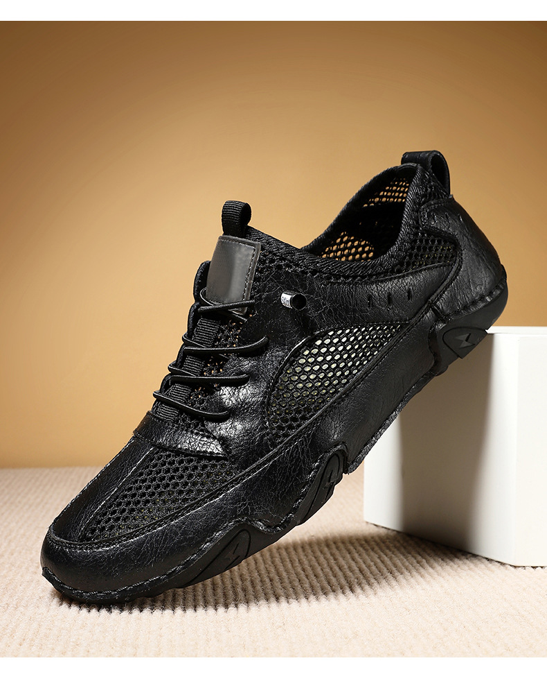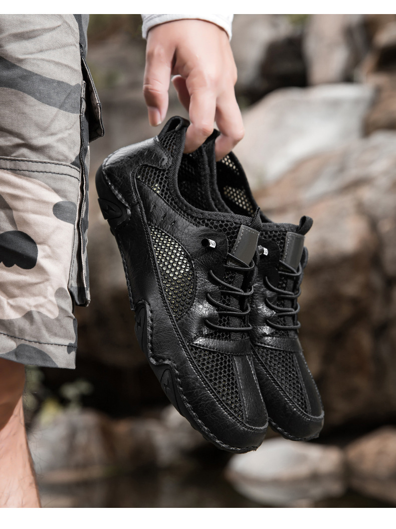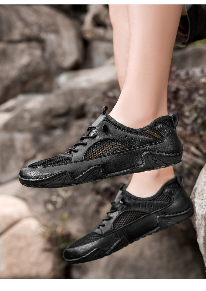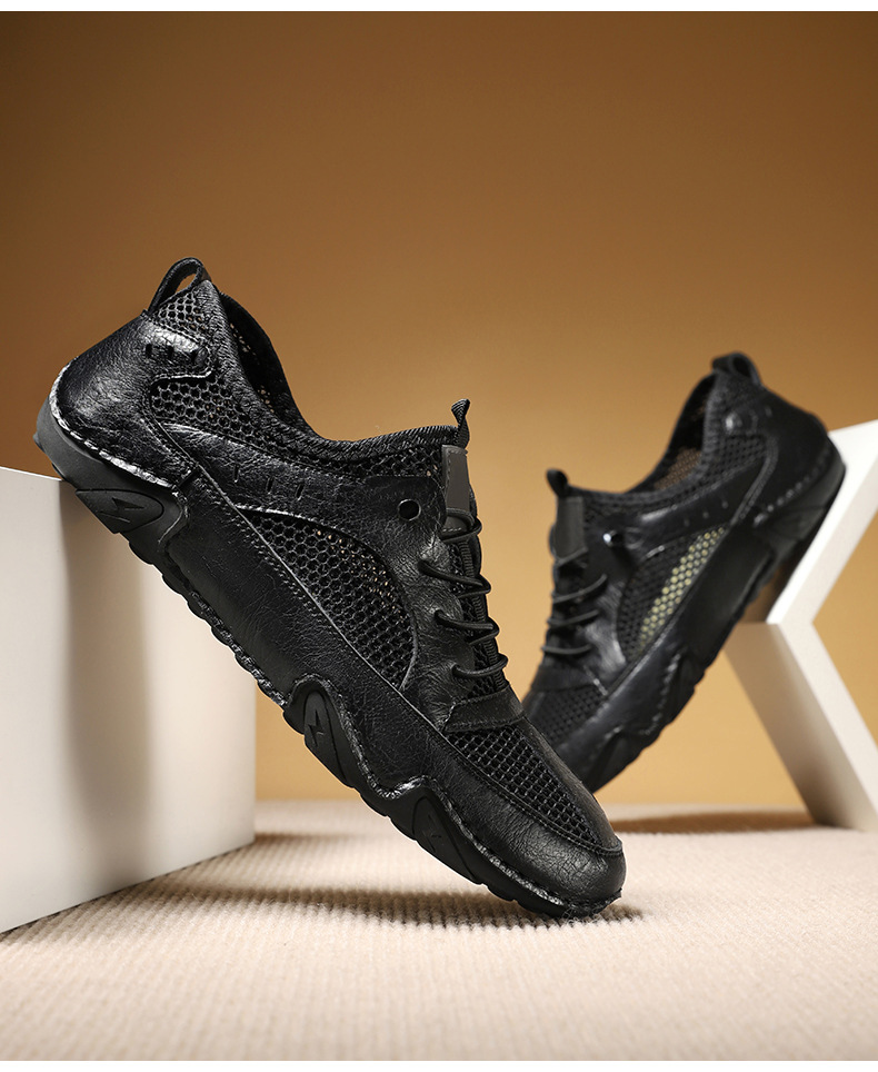 真皮牛皮跨境新款男士休闲运动鞋大码缝制透气网面鞋八爪鱼男鞋子