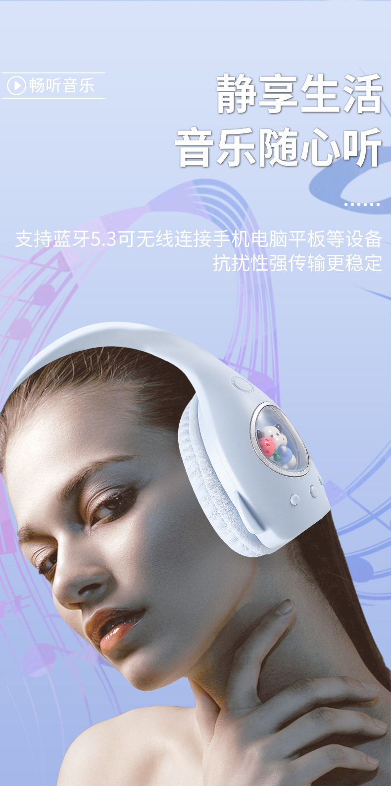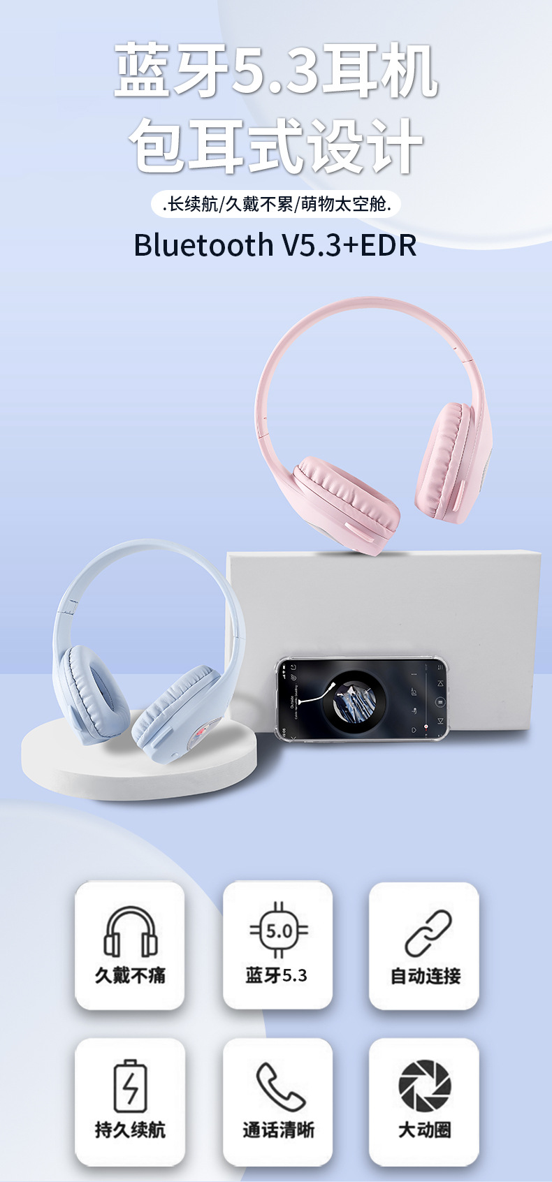 TM-091头戴式无线蓝牙耳机高音质萌系少女降噪网课游戏音乐通话
