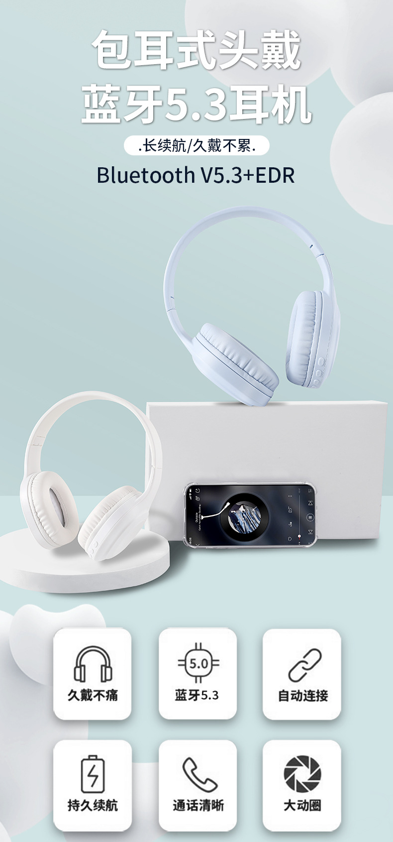 TM-090头戴式无线蓝牙耳机高音质游戏运动网课电竞耳机超长续航