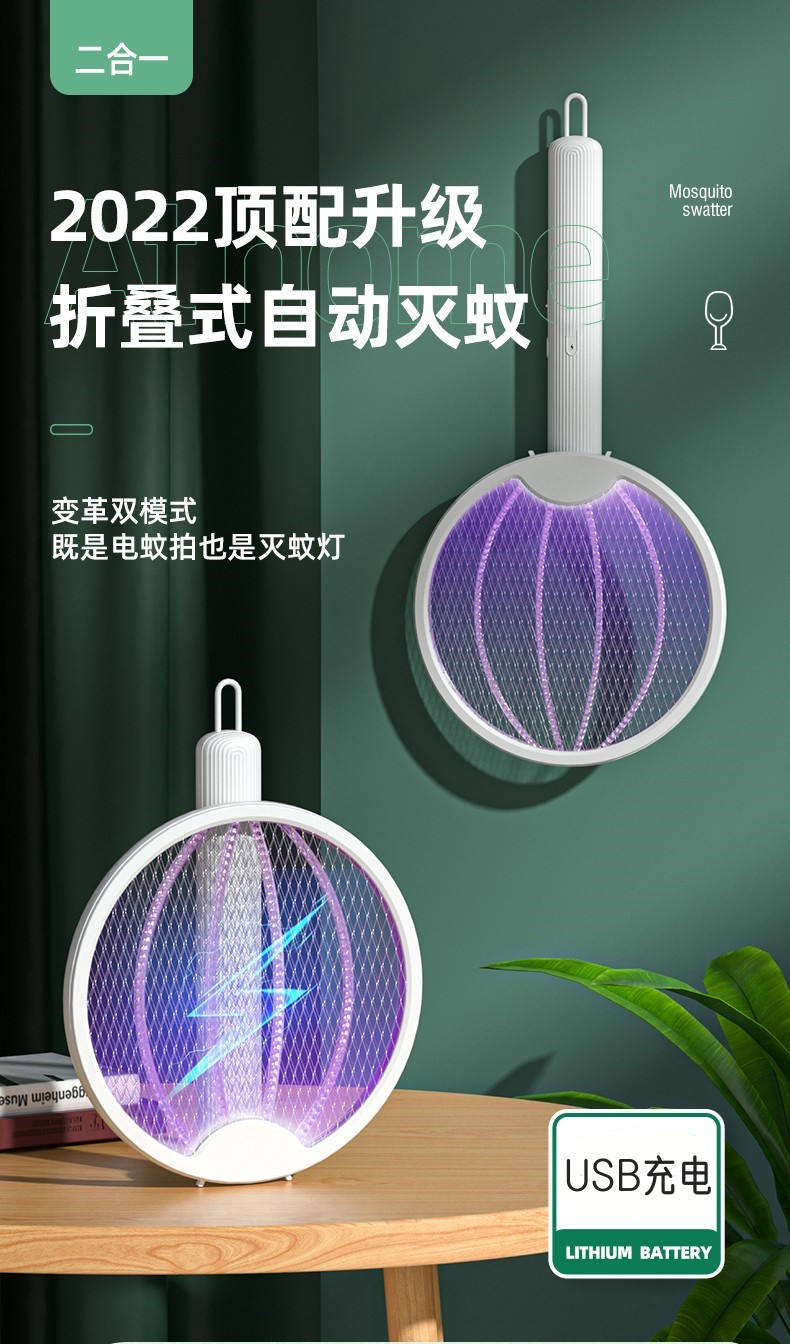 美斯特家用电蚊拍USB折叠灭蚊拍灭蚊灯二合一自动诱蚊跨境驱蚊器