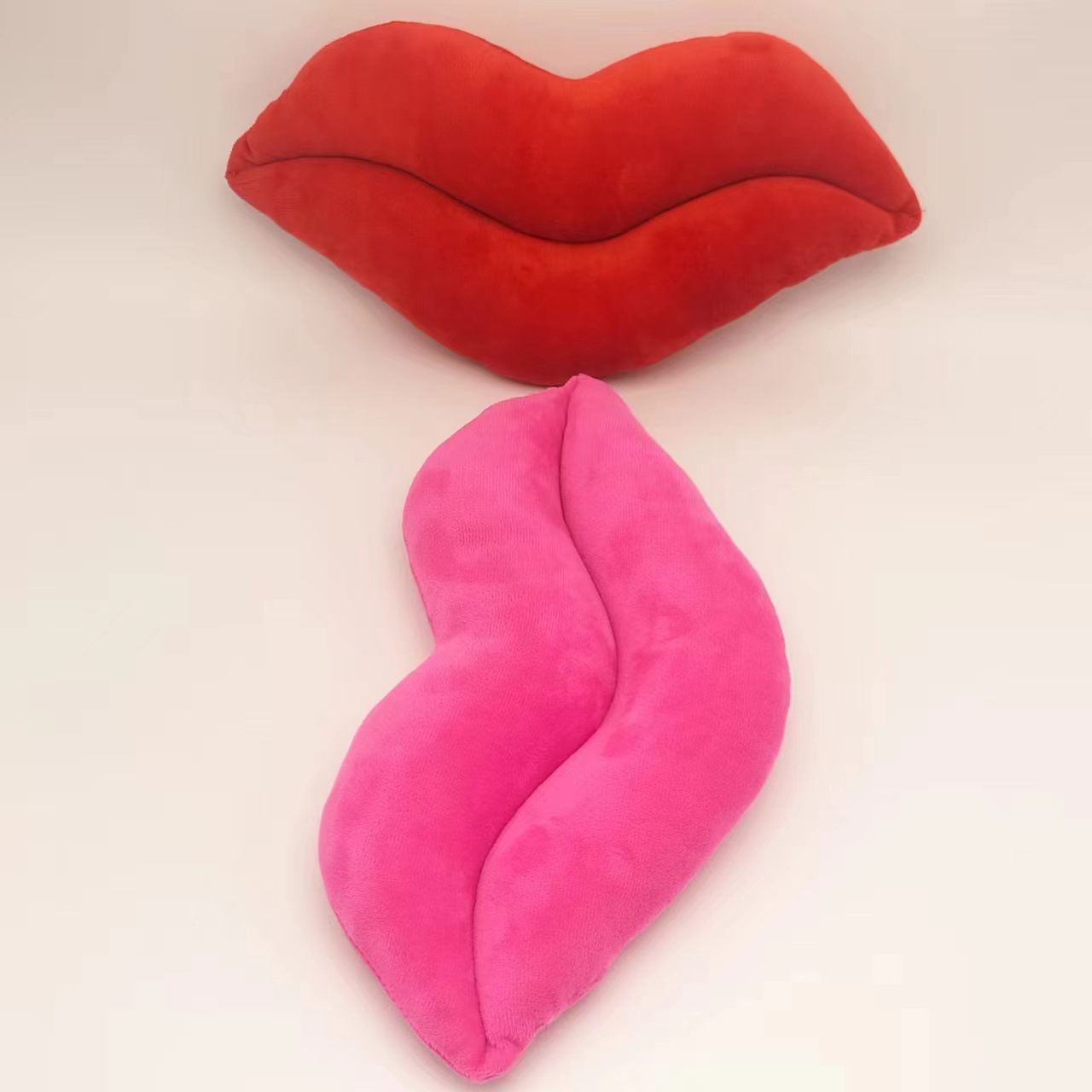跨境短毛绒抱枕创意个性可爱嘴唇抱枕生日礼物汽车抱枕靠垫批发