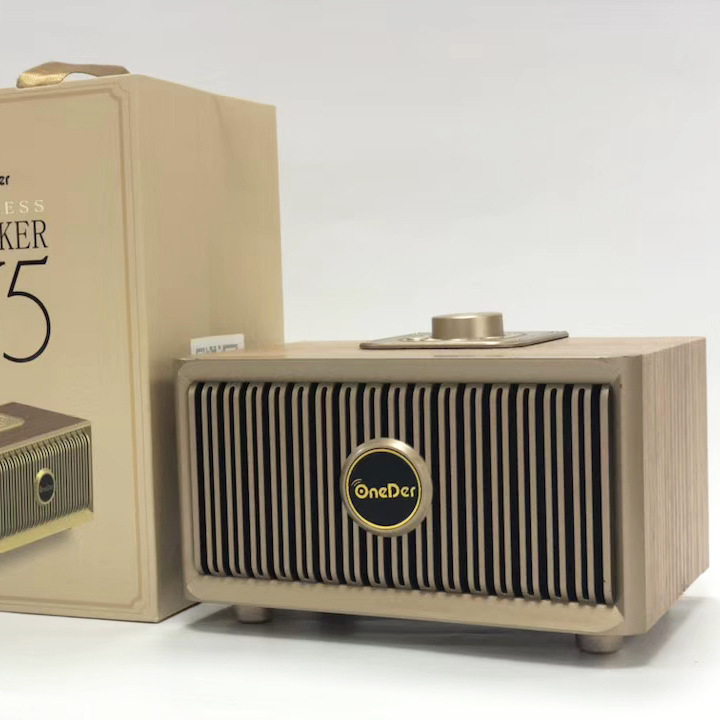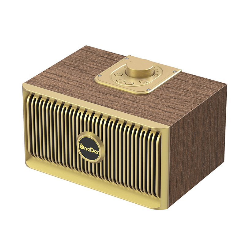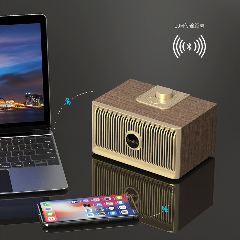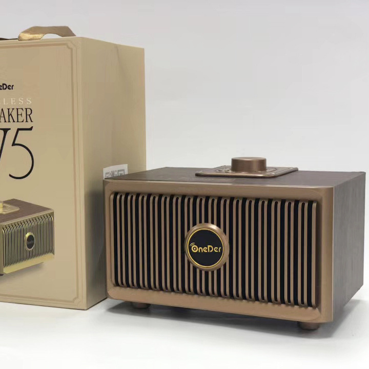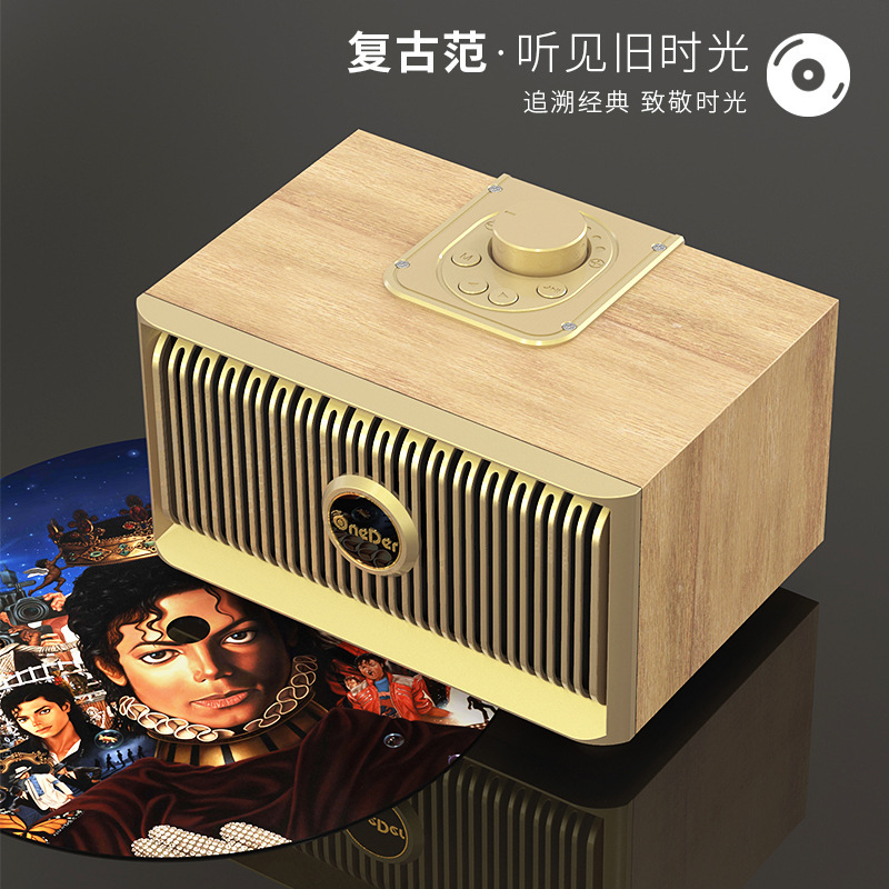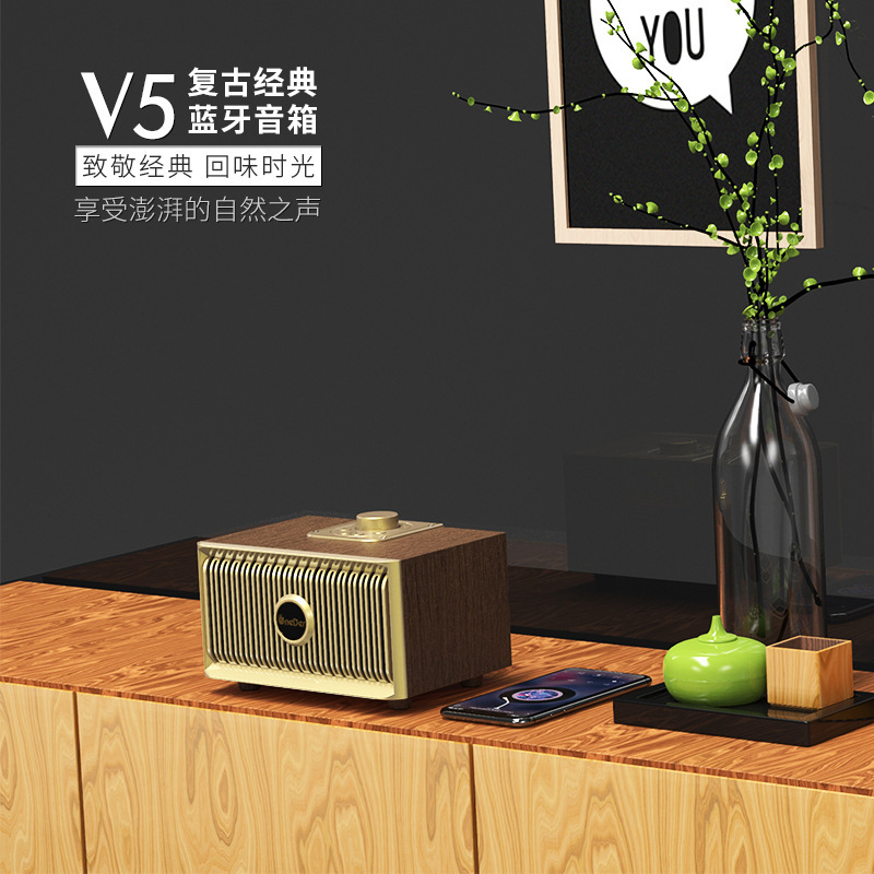 V5跨境复古木质家居蓝牙音箱便携创意礼品可旋转按钮无线蓝牙音响