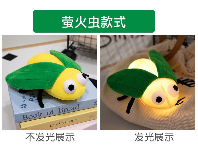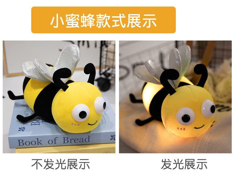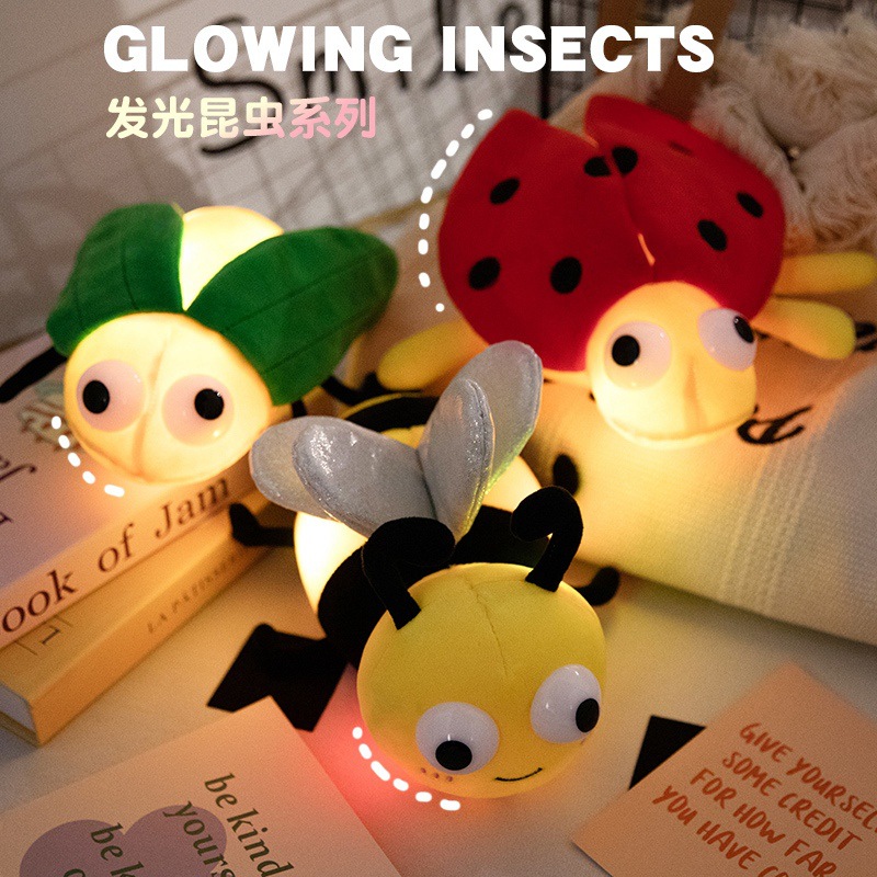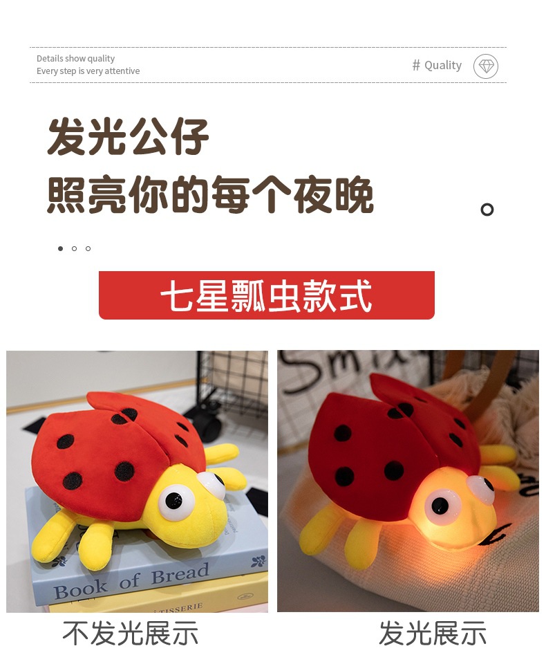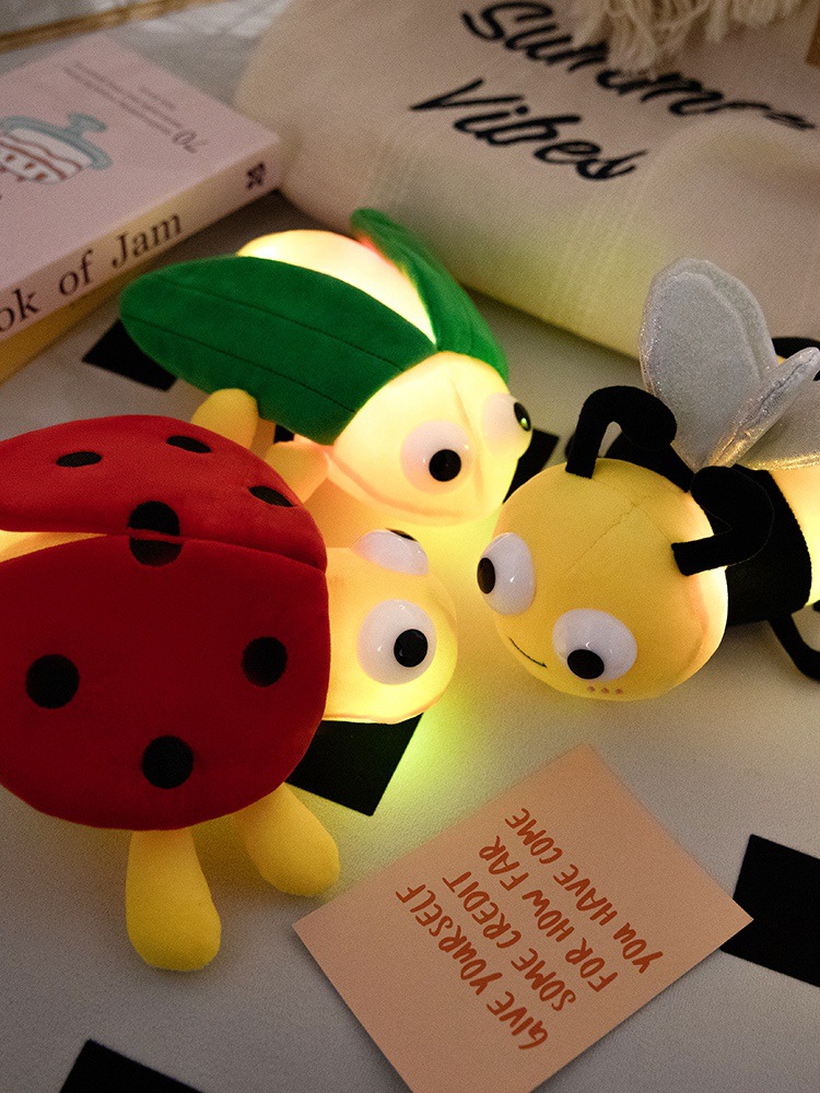 发光昆虫可爱瓢虫公仔卡通蜜蜂毛绒玩具布娃娃摆件安抚礼物