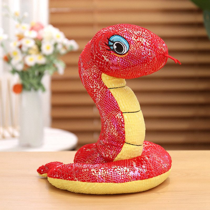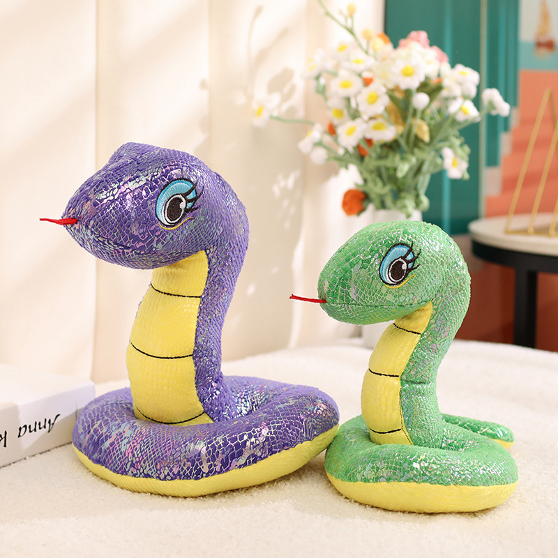跨境仿真亮片蛇毛绒玩具公仔装饰摆件2025生肖蛇年吉祥物玩偶娃娃