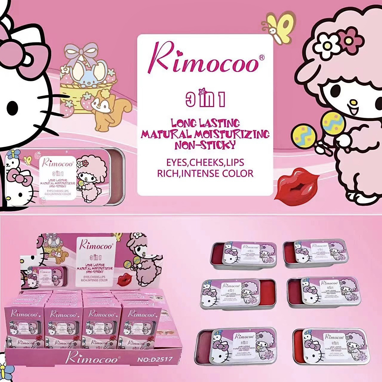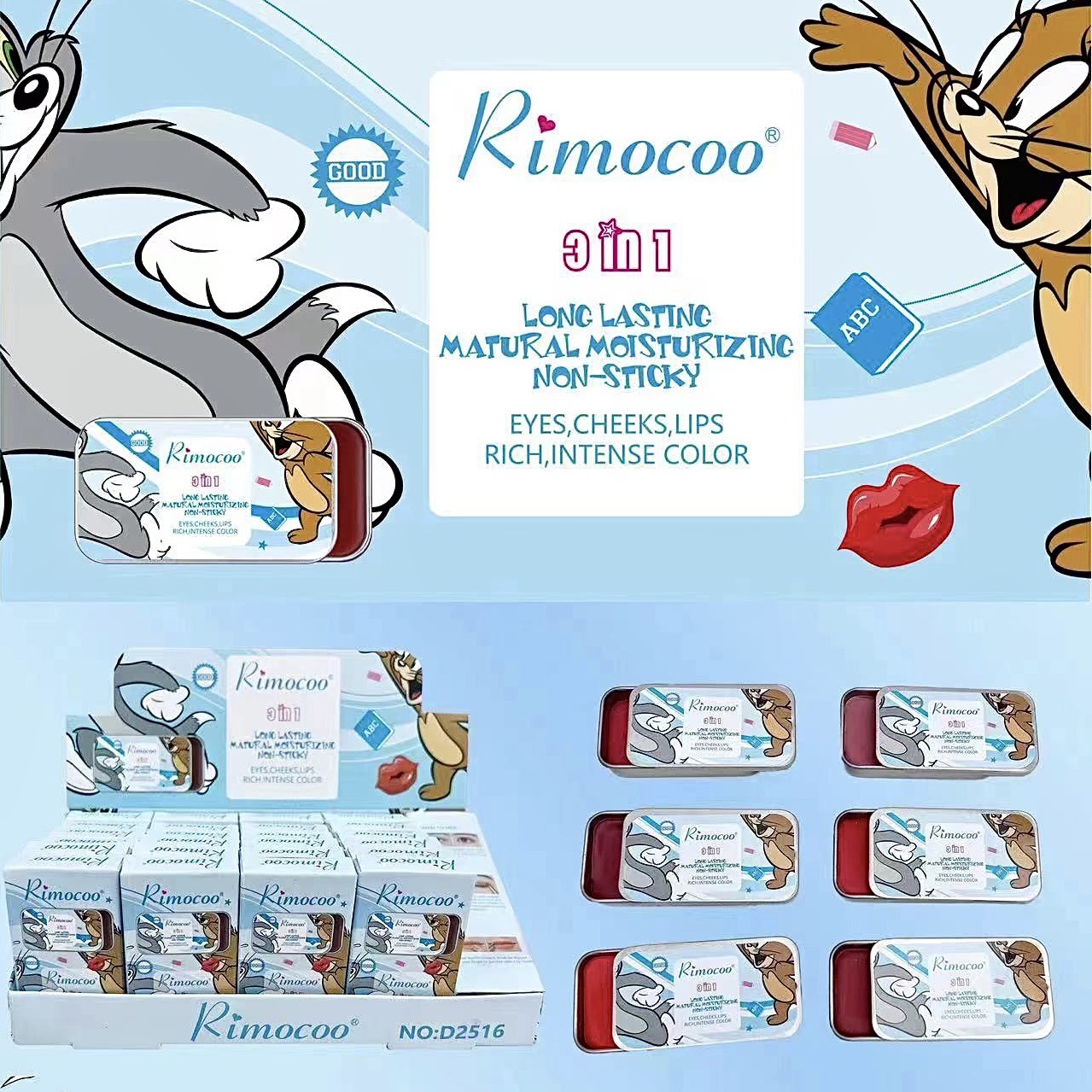 跨境新品甜心绵绵哑光慕斯腮红泥唇泥眼影泥多用雾面丝绒彩妆批发