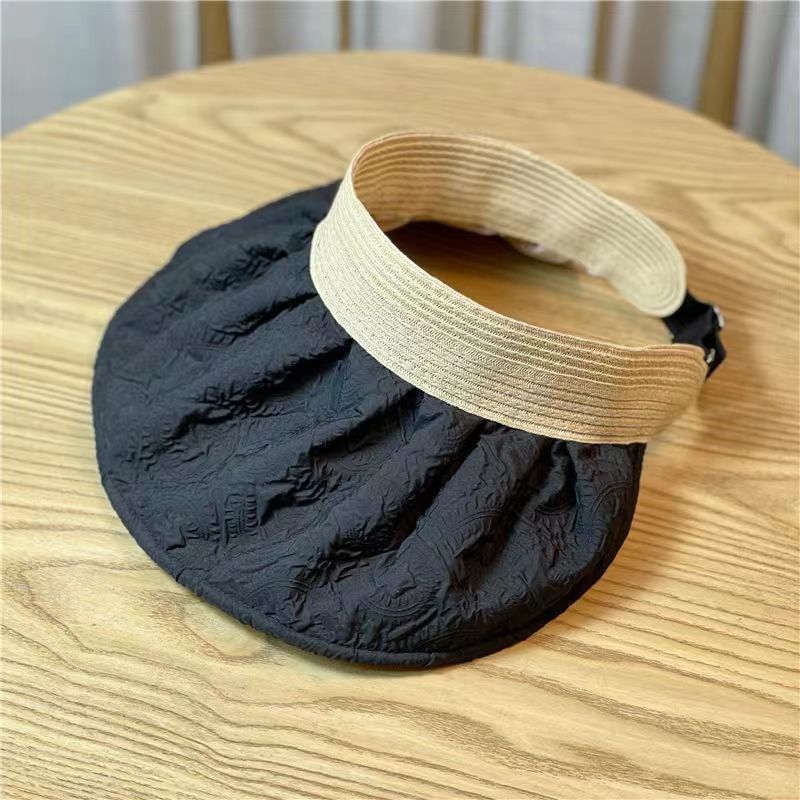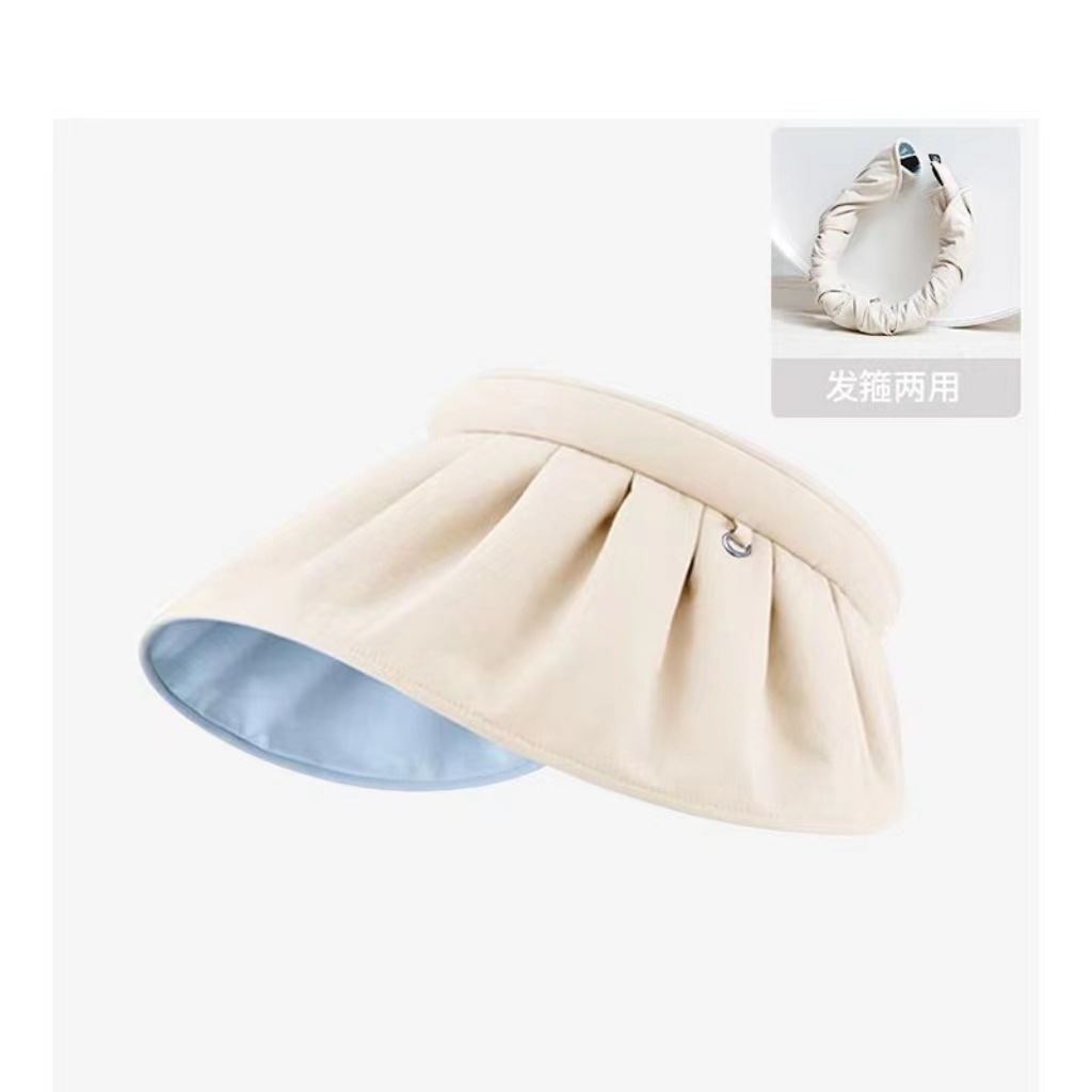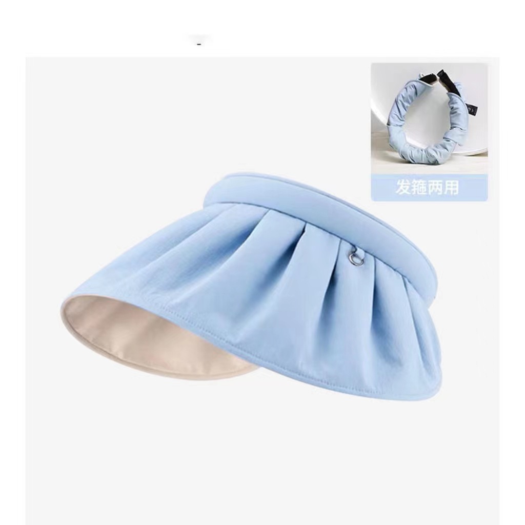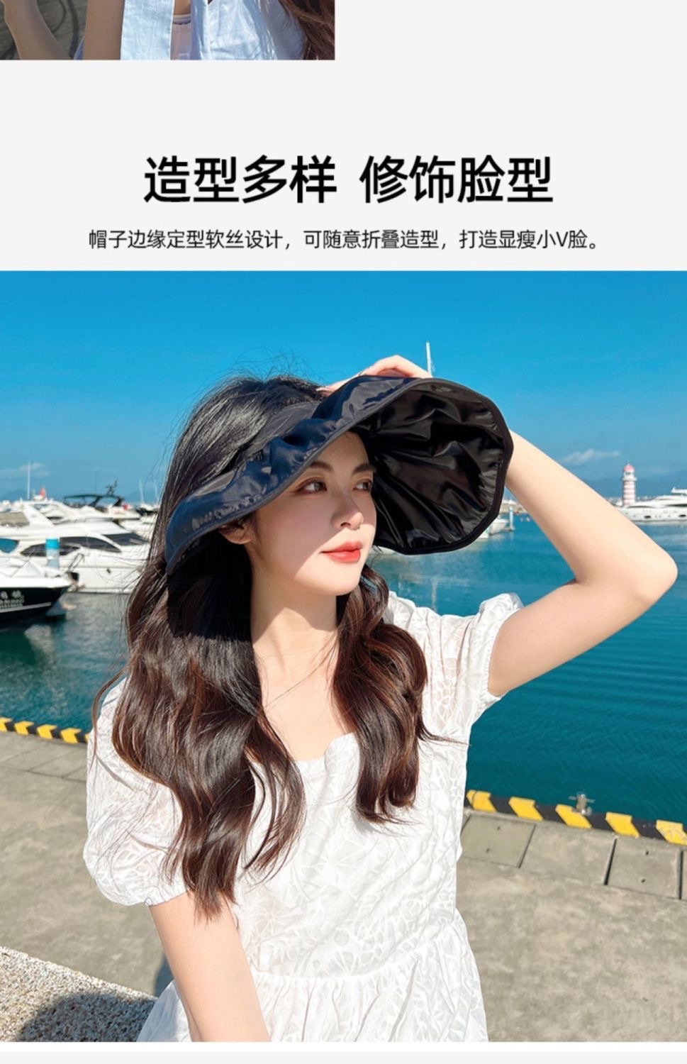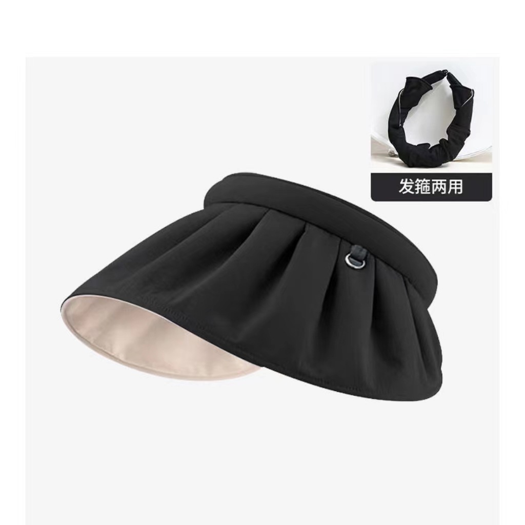 空顶帽夏季防晒帽黑胶贝壳帽大帽檐两用贝壳帽可卷发箍韩版女士帽