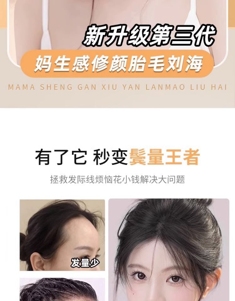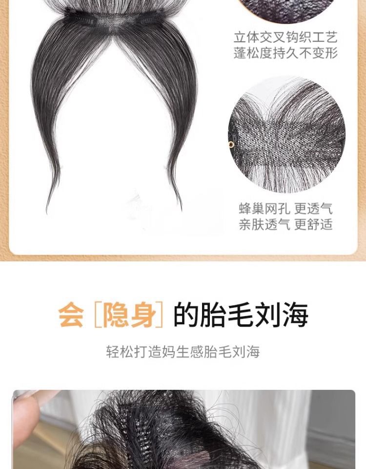 胎毛刘海假发片女头顶自然前额无痕仿真发轻薄发片隐形发际线假发